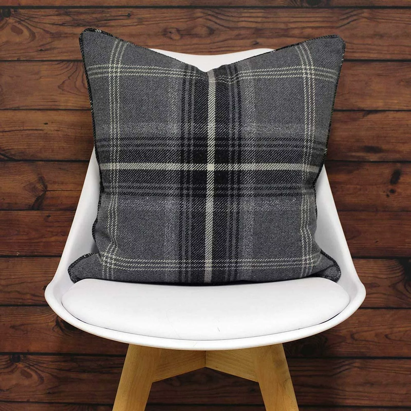 Named after the Scottish town of Aviemore, known for its secluded lochs and ancient forests, these cushions breathe life into your home. The Aviemore range features a reversible grey plaid check pattern which is specifically centred and are available in a range of earthy tones reminiscent of the Scottish Highlands. The faux wool fabric helps connect you with nature while being made of 100% robust polyester meaning you can machine wash these cushions without any of the cons of real wool. These cushions are designed to perfectly match with the Aviemore curtains and blinds.