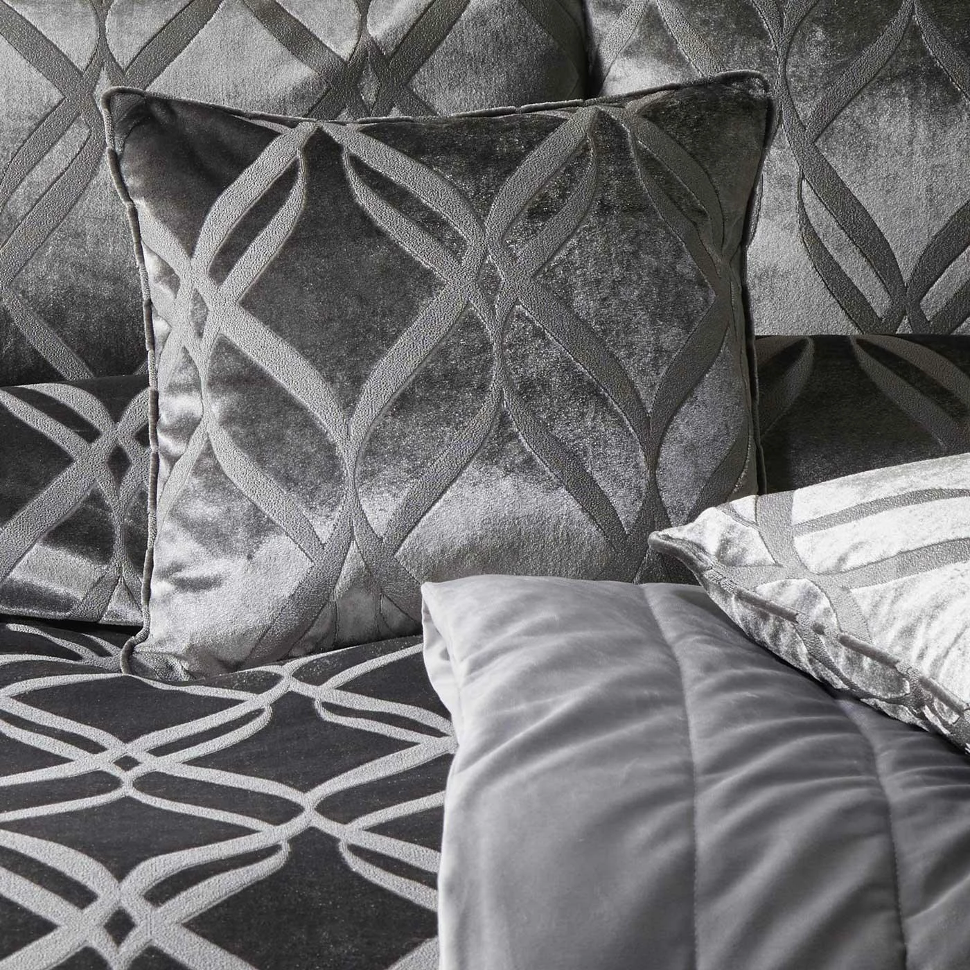 A simple ogee pattern in this season’s must have slate grey colour palette is woven into a sumptuously soft velvet fabric to stunning effect to create this luxurious cushion that will enhance any room.