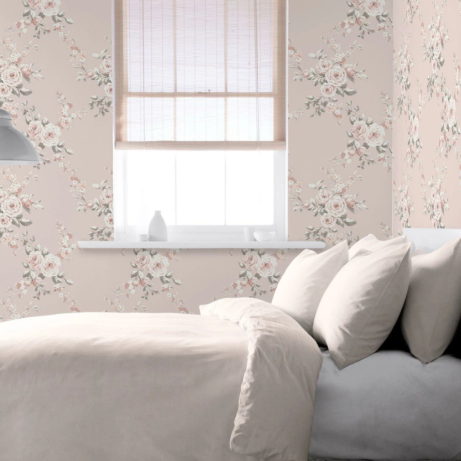 A true classic, this hand painted floral wallpaper design of beautiful large bouquets in a soft pink shade for an effortless, modern update. This wallpaper is ideal for an all-over design or a feature wall!