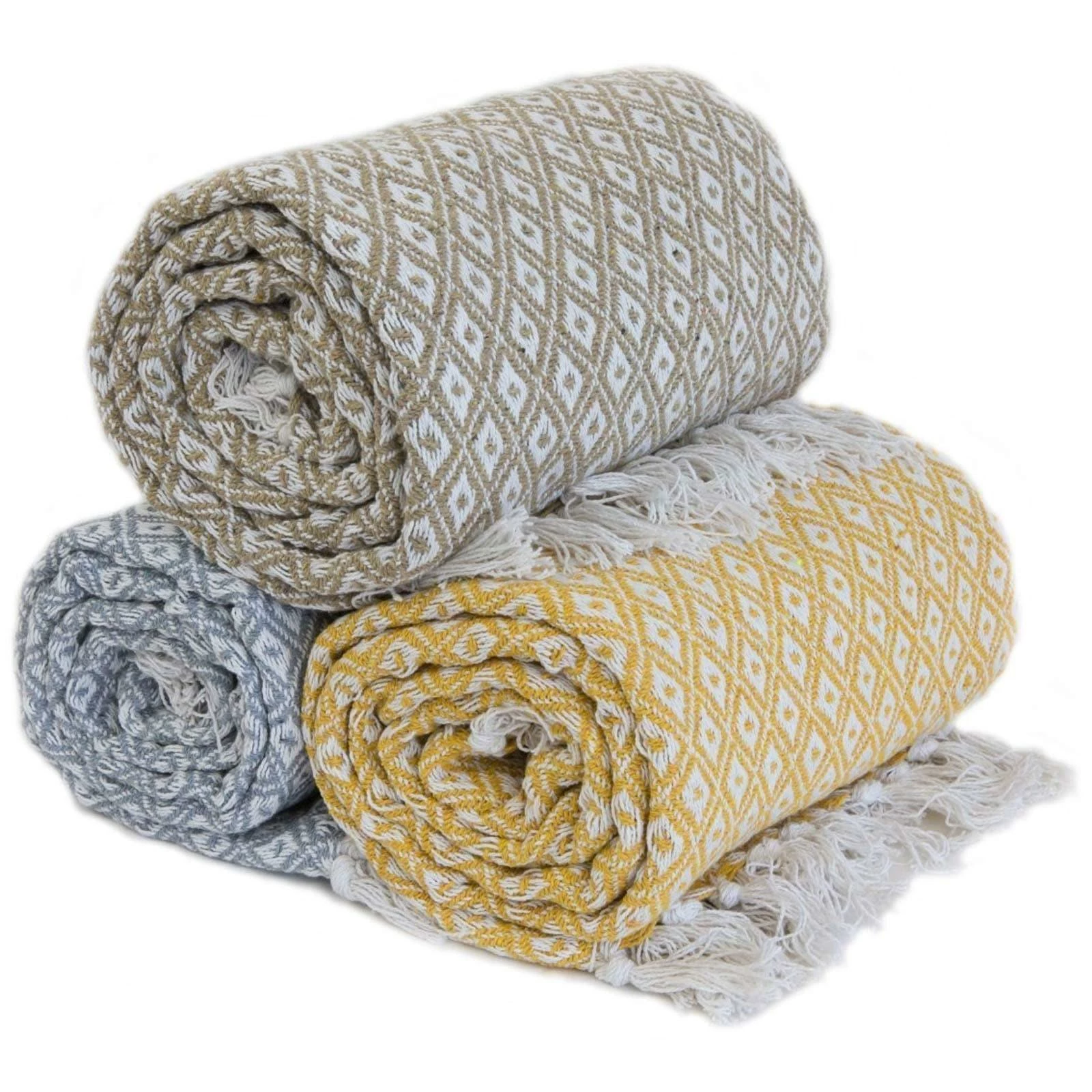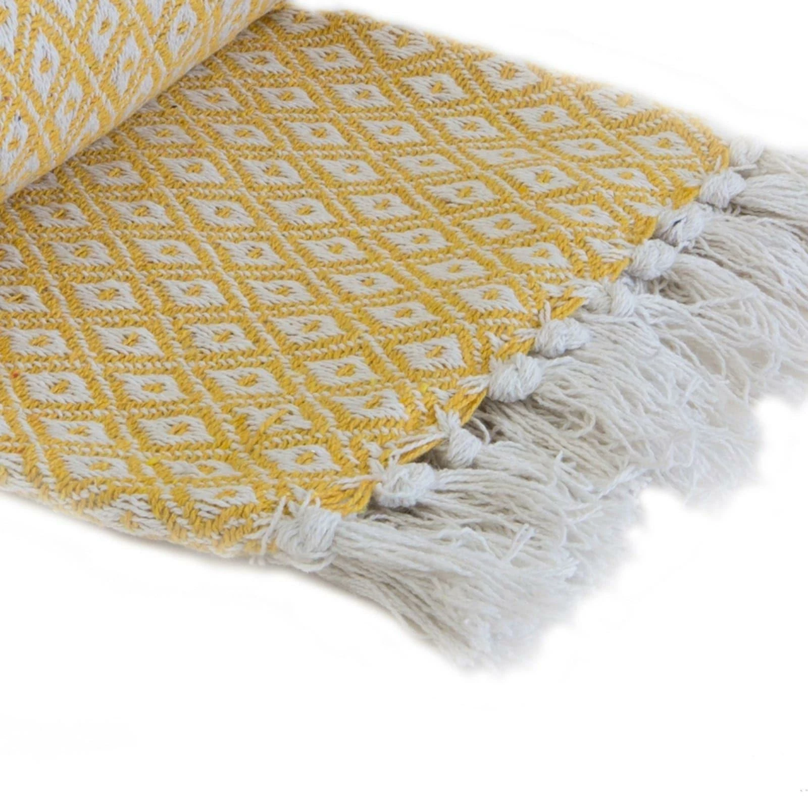 A contemporary geometric design woven using 100% recycled cotton fibres, this ochre yellow throw will co-ordinate with any modern decor. When not being used to keep you cosy on cold nights, this throw can be draped over a chair or folded at the end of the bed. The boho feel also means these blankets look great outside for BBQs and garden parties! Recycled cotton cuts down on the harsh process of creating brand new cotton products, it is a natural fibre and is biodegradable. We hope you’ll get many happy years of use from this throw, but if the time ever comes that you need to dispose of it, it can be recycled again!