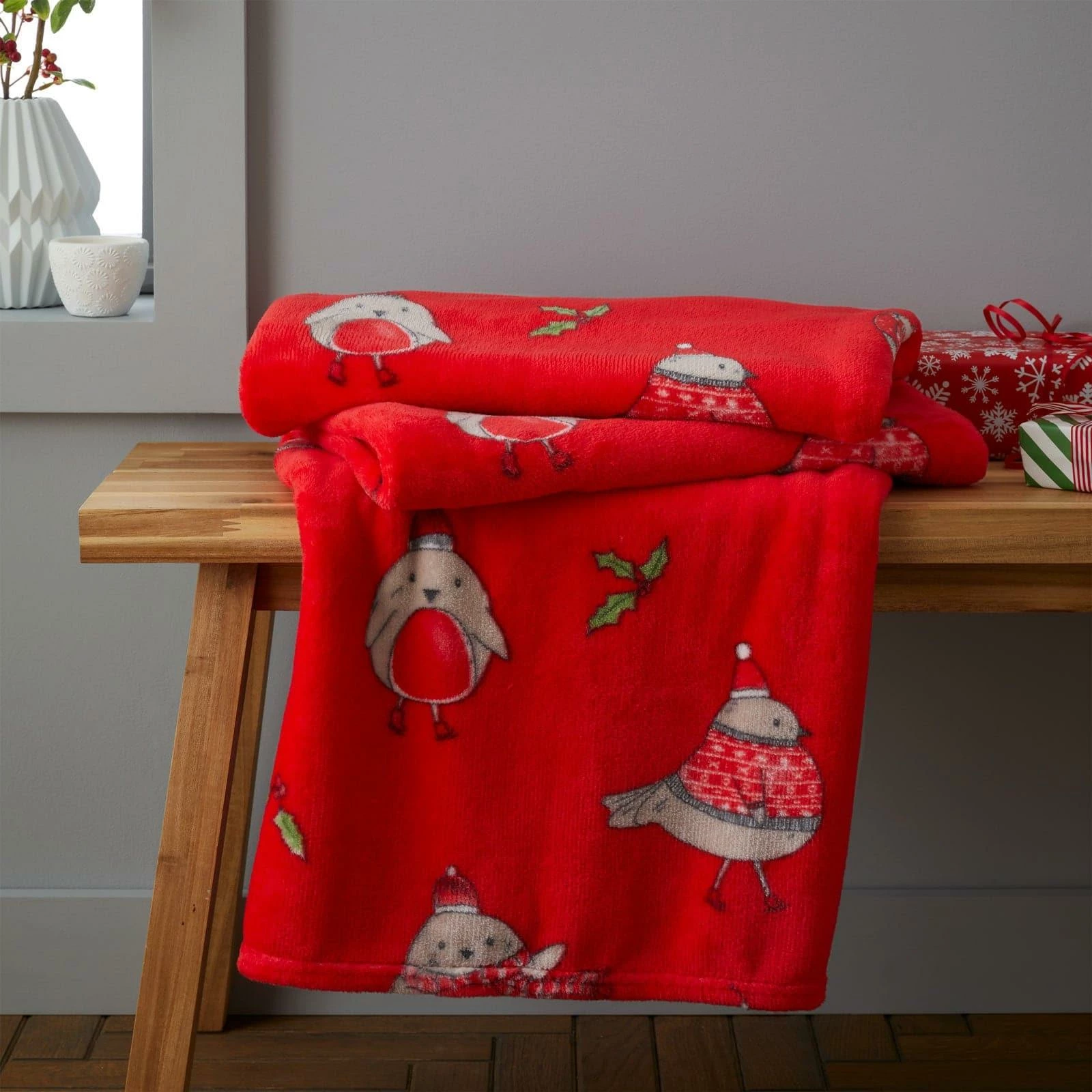 Add the perfect Christmas accessory to your home and wrap up warm with our cosy fleece Robins throw, ready to bring you festive fun.