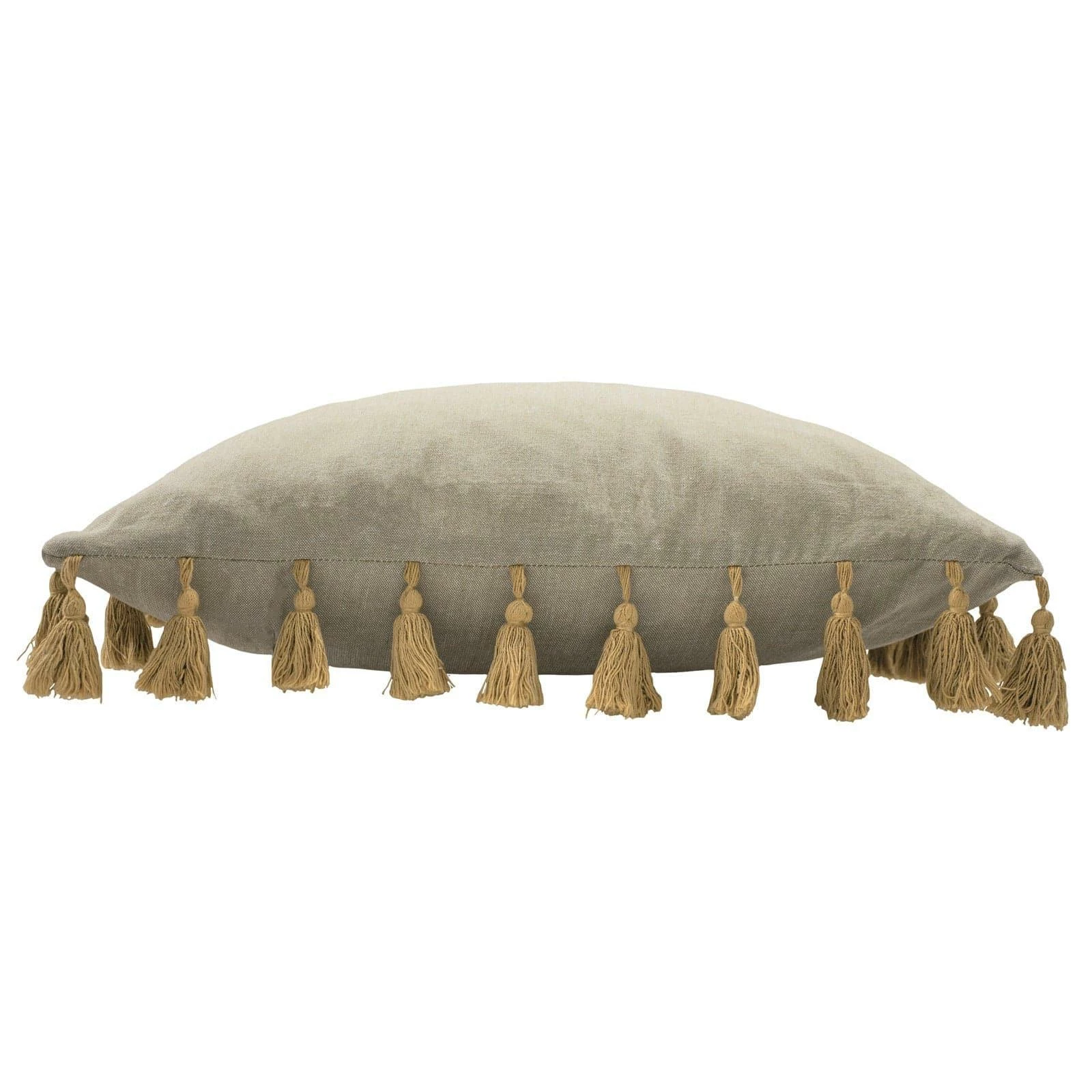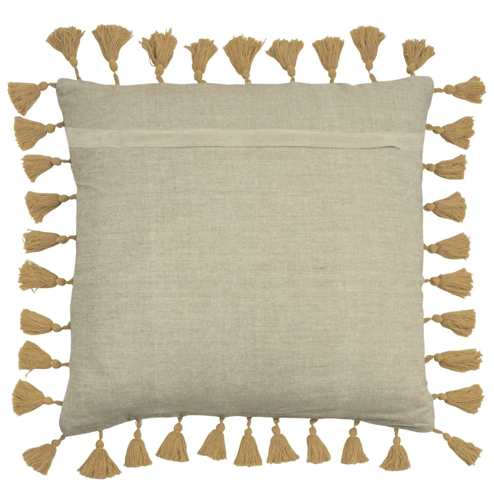 - Features a linen look cotton chambray fabric complete with contrasting ochre tassels