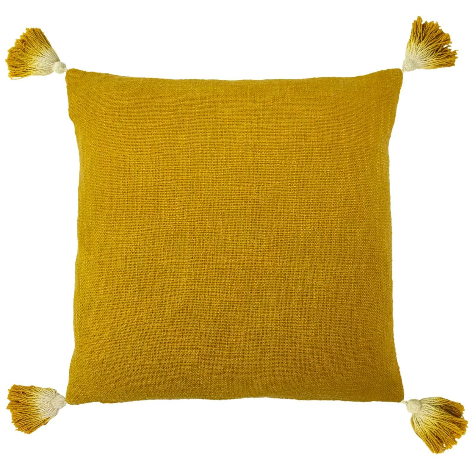 Add texture and colour to your interior with the Eden ochre slub cotton cushion cover featuring ombre corner tassels and co-ordinating plain reverse. Perfect for colour blocking and layering with other textures to create a cosy, contemporary style.