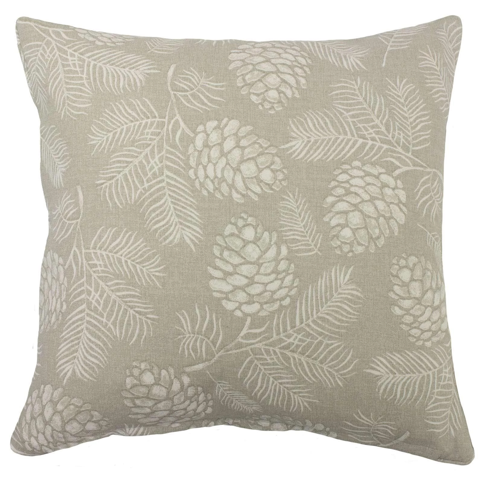 The perfect transitional cushion for all seasons. Add a burst of the woodland to your interior with this grey beige printed cushion cover, designed to epitomise the concept of the outdoors being combined within the interiors of the home. Taking inspiration from the outdoors, the printed design features pine cones and sprigs and is perfect for contemporary country styling.