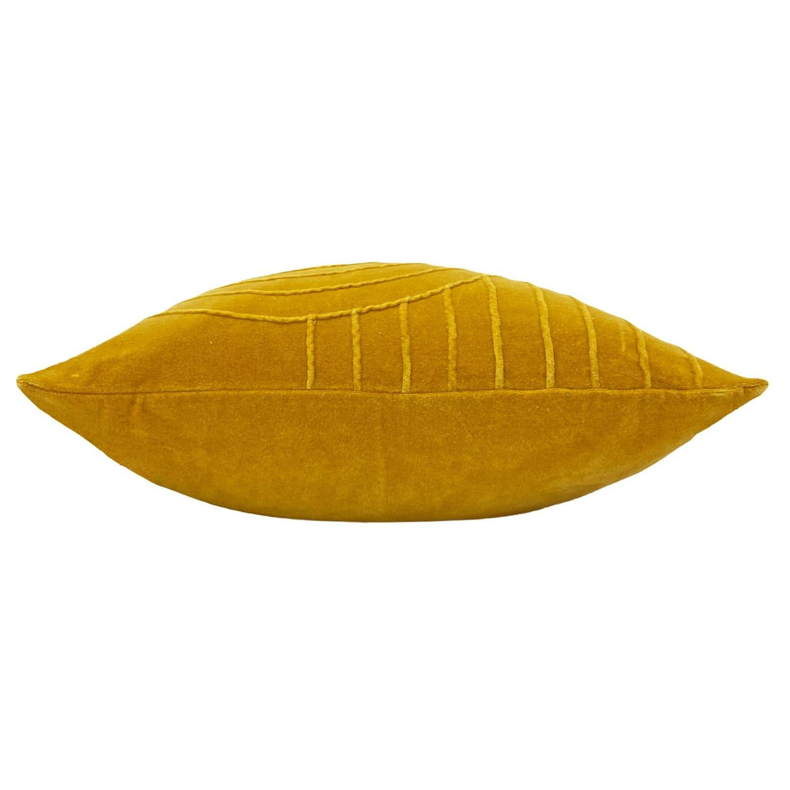 - Features a linear pleated design in an ochre yellow cotton velvet