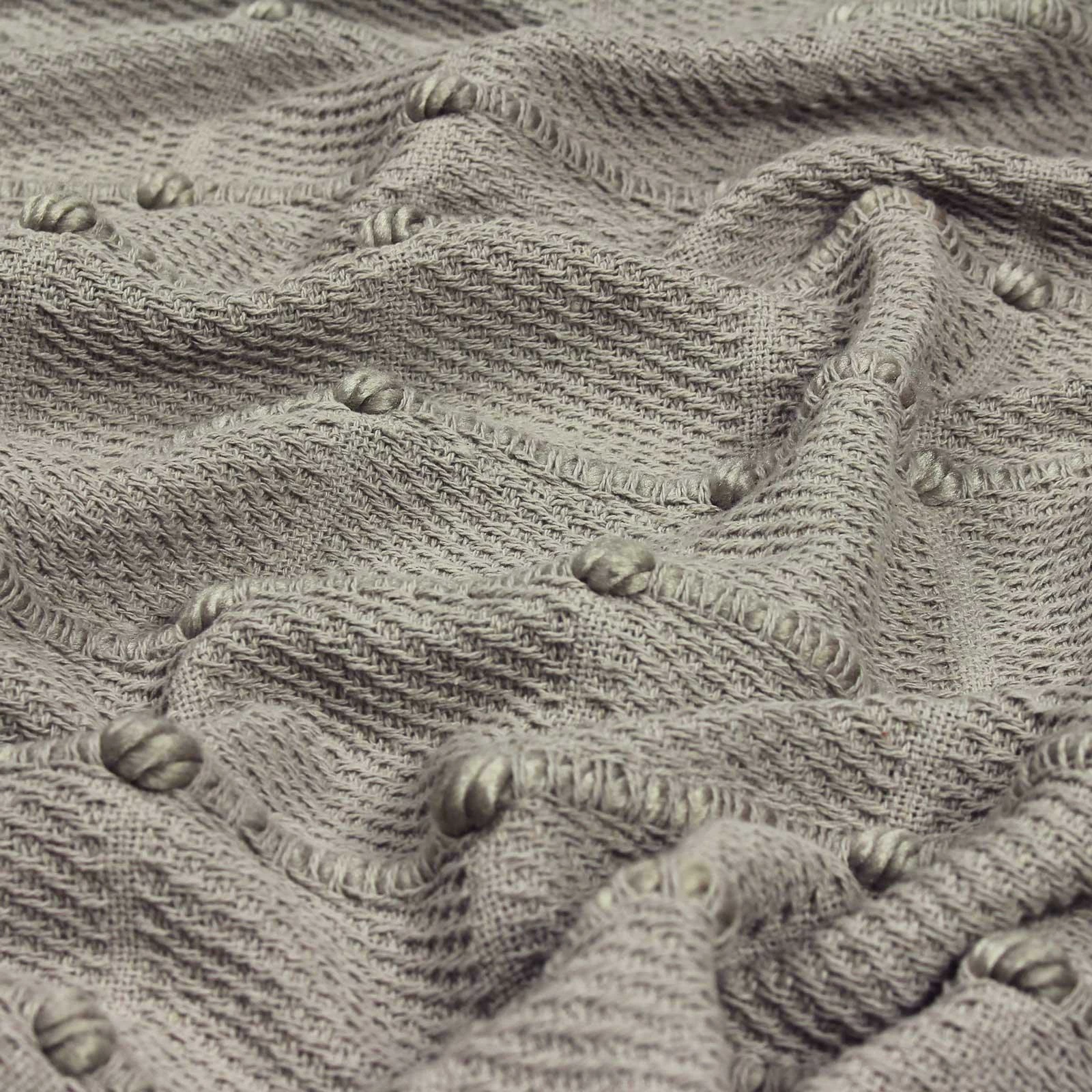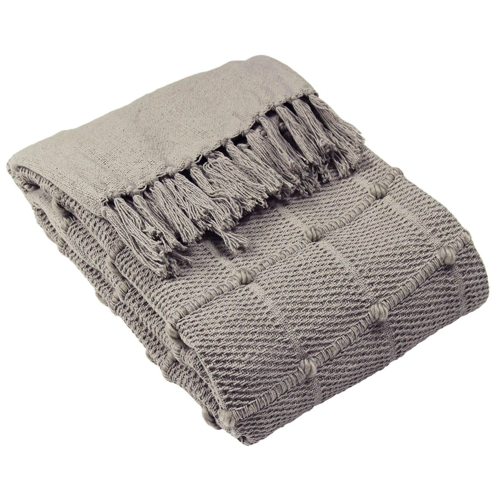 Add some texture and colour to your home with our soft grey Motti cotton throw featuring a linear woven yarn stitch made from recycled PET, creating an overall subtle grid design. Perfect for summer styling or all year round colour blocking. Finished with a knotted tassel trim on two sides, this throw will fit in any room!