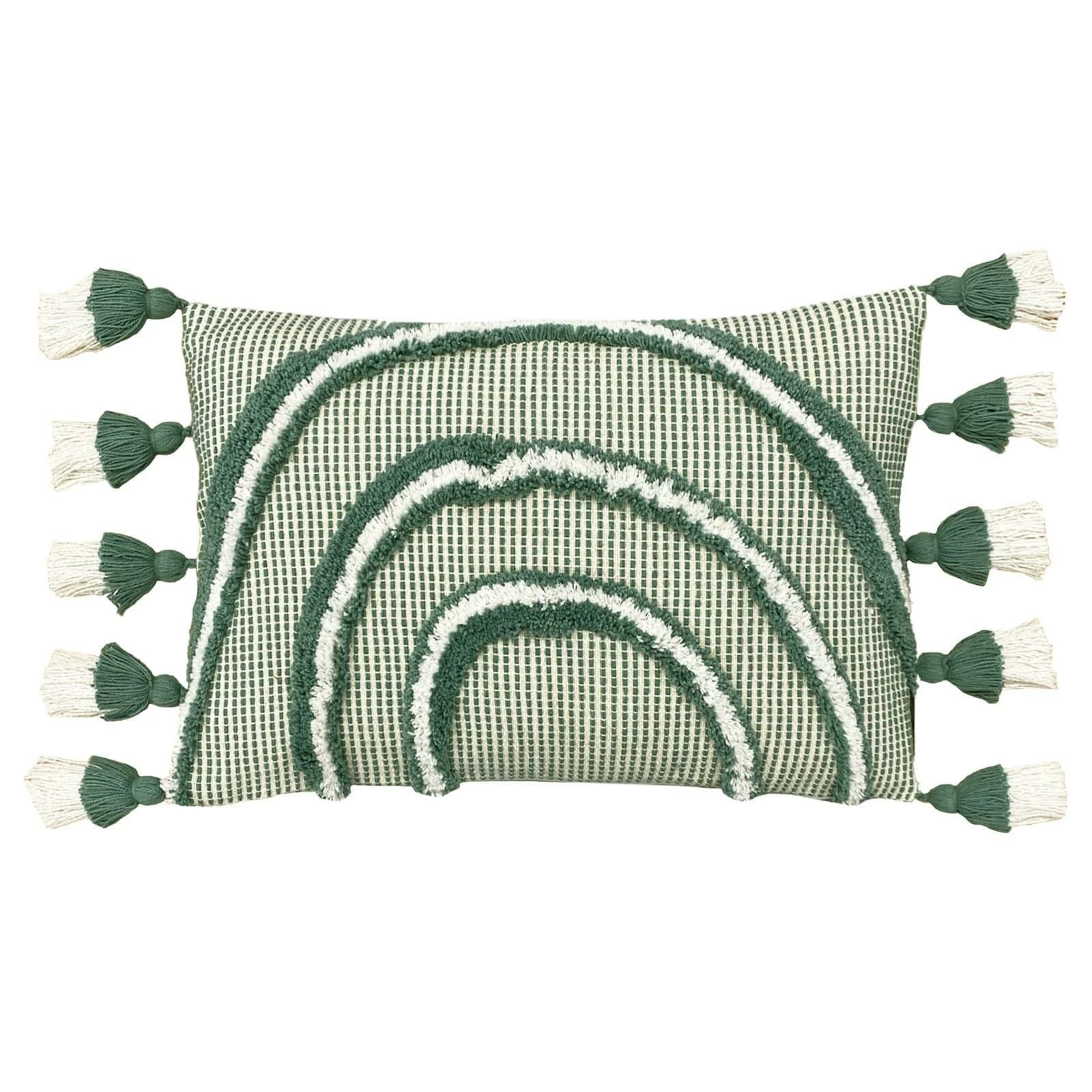 This green Rainbow Tufted cushion is a perfect addition to any contemporary style interior. With the tufted rainbow design, woven base and tasselled edging, it will stand out on any sofa, chair or bed in your home.
