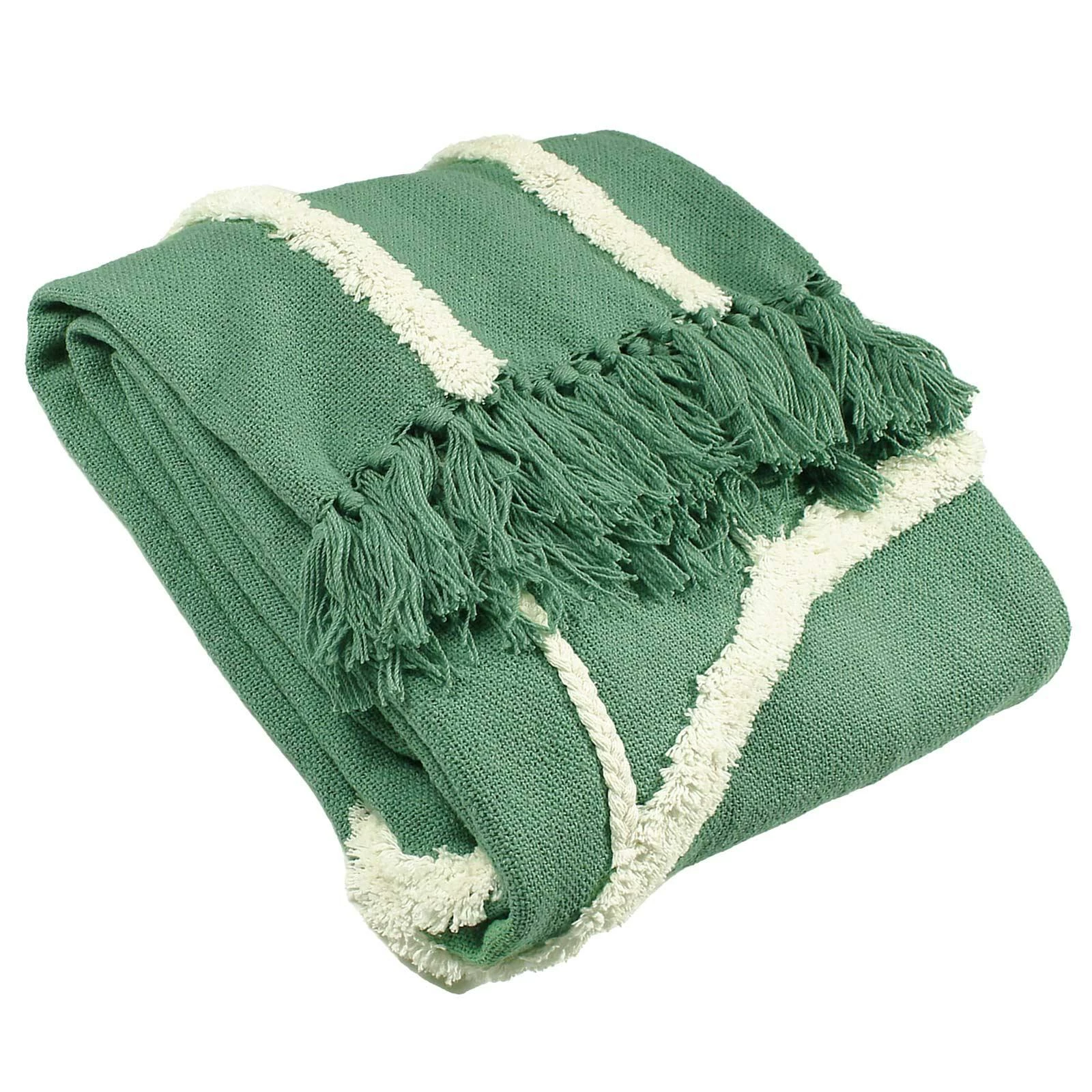 The Rainbow Tuft throw would make a perfect statement piece in your home. Combining a green coloured woven base with a contrasting cotton tufted rainbow design, this will create a talking point with your guests.