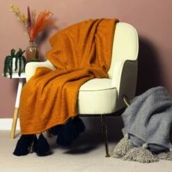 Perfect for those who love a bold bedroom or sofa feature, this beautifully soft gold throw will instantly have you curling up on the sofa or bed. Finished with navy accentuated contrast tassels, this design will be stand out from any decor and will instantly bring personality to any space, allowing you to make your mark and find your own style.