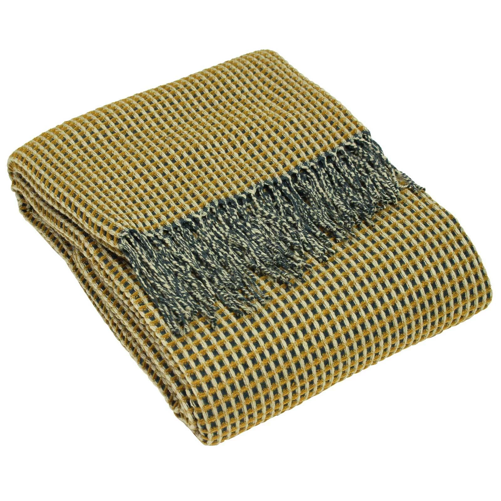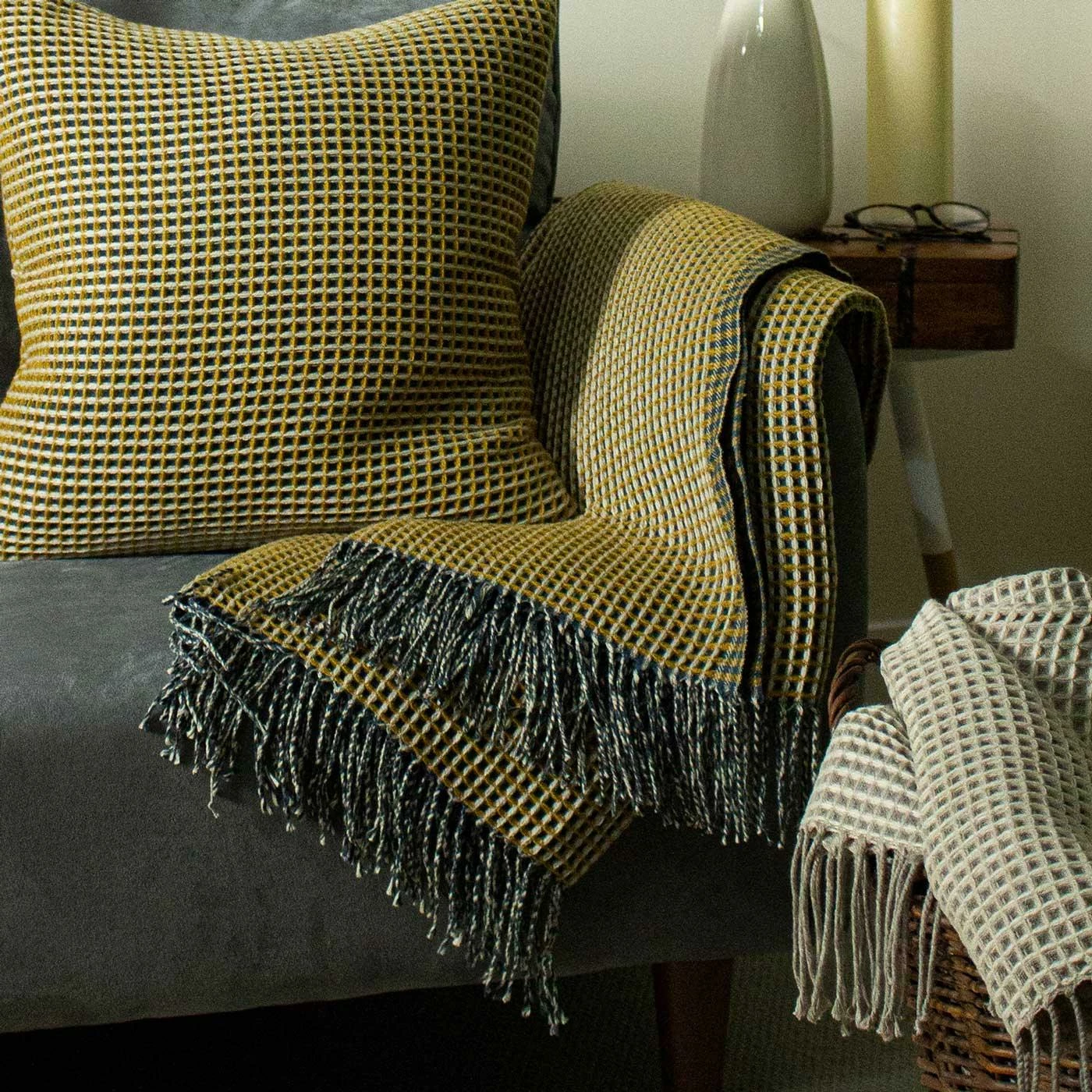 Create texture and warmth in your home with the Rowan knitted waffle throw crafted with three tonal yarn colours giving a unique textural appearance and contrasting appearance on the reverse. With twisted tassel edge on two sides and subtle check edging on the other sides, this is a unique and timeless throw that is perfect for cosy styling, all year round.