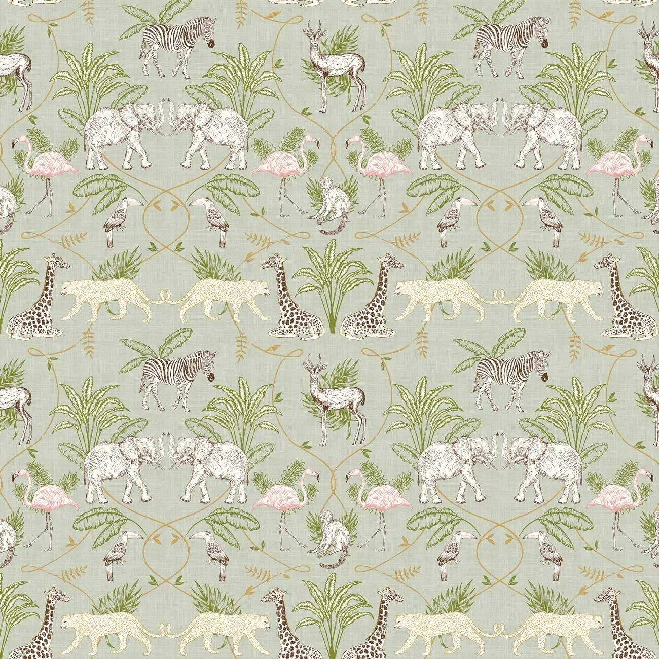 The magnificent Serengeti landscape is captured in the tranquil wallpaper featuring all the best loved safari animals in a decorative swirling kaleidoscopic scenery. A soft green palette sits behind the design as it enhances its intricate detail. A compilation of giraffes, zebras, elephants, cheetahs, monkeys, flamingos and Toucans will add a touch of safari beauty wherever it is used. This wallpaper is a paste-the-wall application; simply paste the wall, hang your paper, and leave it to dry. Each roll is 10.5m long and 53cm wide. Our Serengeti wallpaper can be used to paper the whole room or to create an eye-catching feature wall.