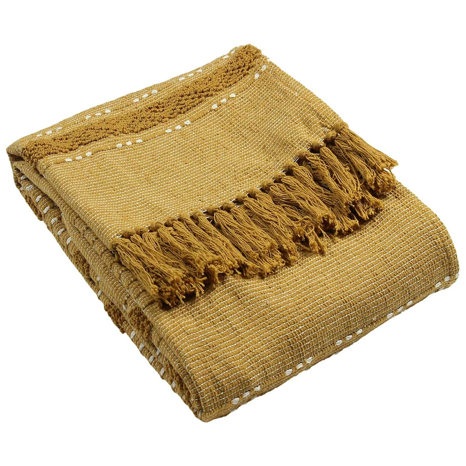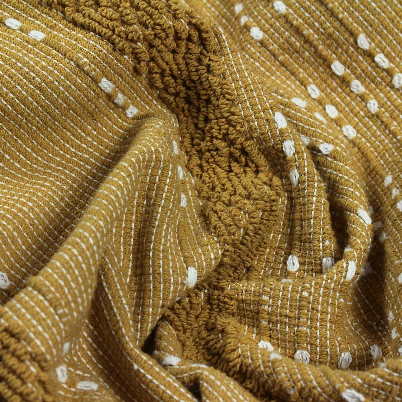 For ultimate summer styling, this ochre yellow Sundown cotton woven throw features contrast raised lines, tufted detail and fringing. Style and layer on a bed for a laid back look, or for cool summer evenings outside.