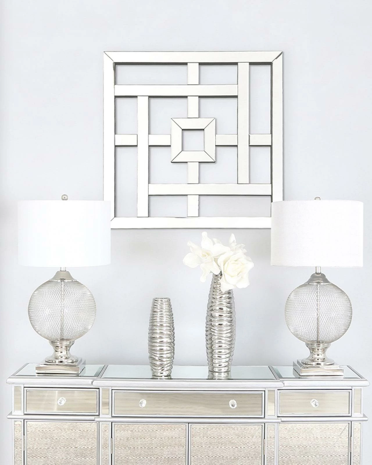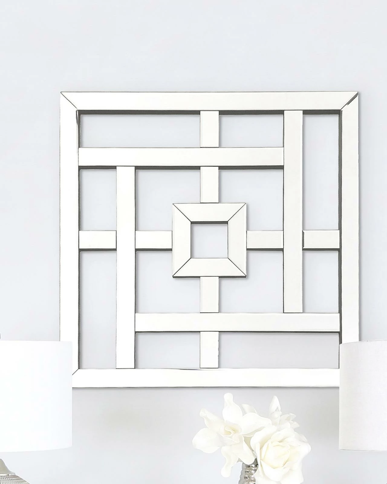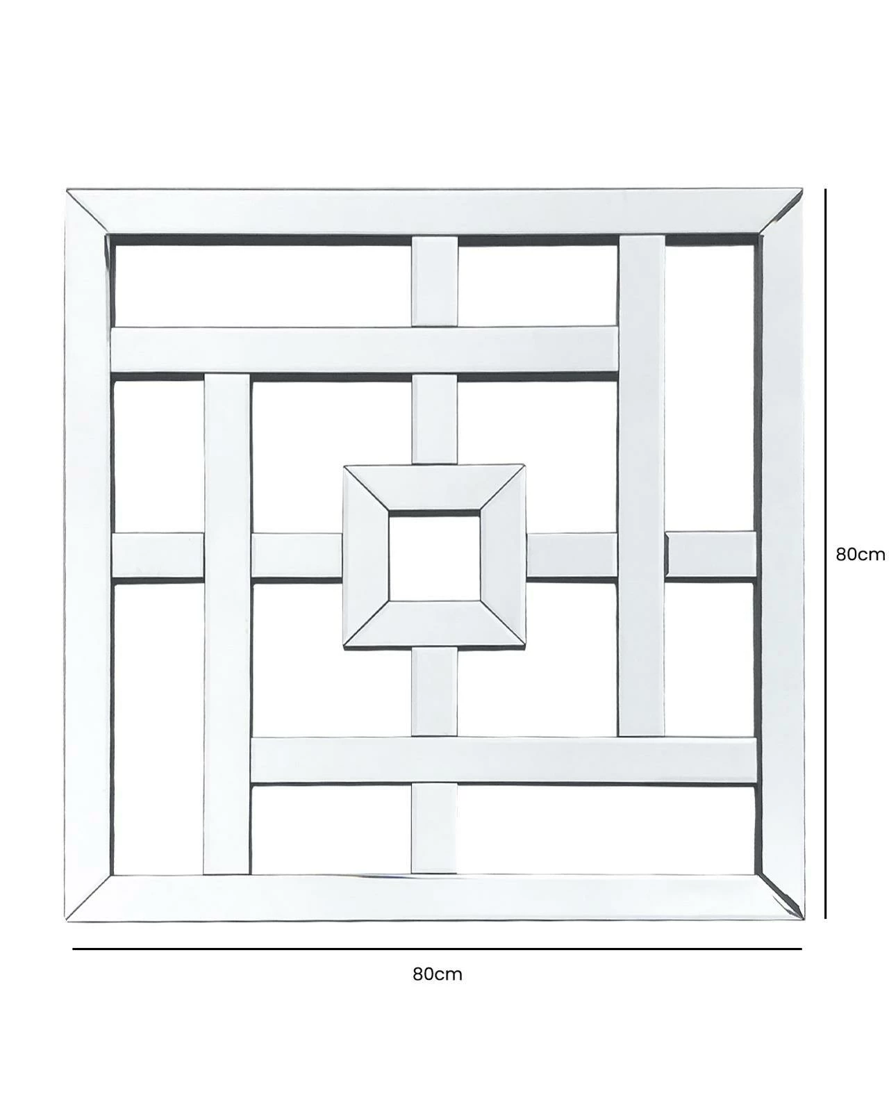 Introducing this geometric wall art, a stunning and unique piece of decor that will elevate the style of any modern home. Measuring 80cm square, this geometric mirror wall art is large enough to make a statement while still fitting comfortably on any wall. The abstract geometric design and silver mirrored finish to create a striking visual display that is sure to grab attention and add style to any room. Whether you’re looking to add a touch of elegance to your living room or create a stunning focal point in your bedroom, it is the perfect choice – its contemporary and modern design makes it a versatile addition to any decor, while its striking visual appeal will leave a lasting impression on all who see it. Brighten up any space with this stunning piece of wall decor. Let it take centre stage in your living space and watch as it transforms your home into a stylish and modern oasis.