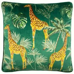 Elegant giraffes roam though the rich green jungle palms on this cushion cover, adding vibrant colour to your home interior. Printed on the softest velvet and finished with a piped trim.