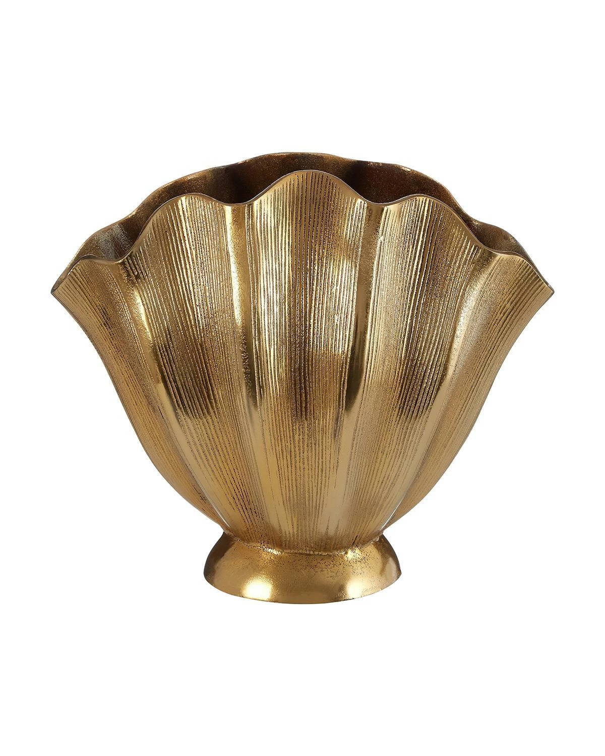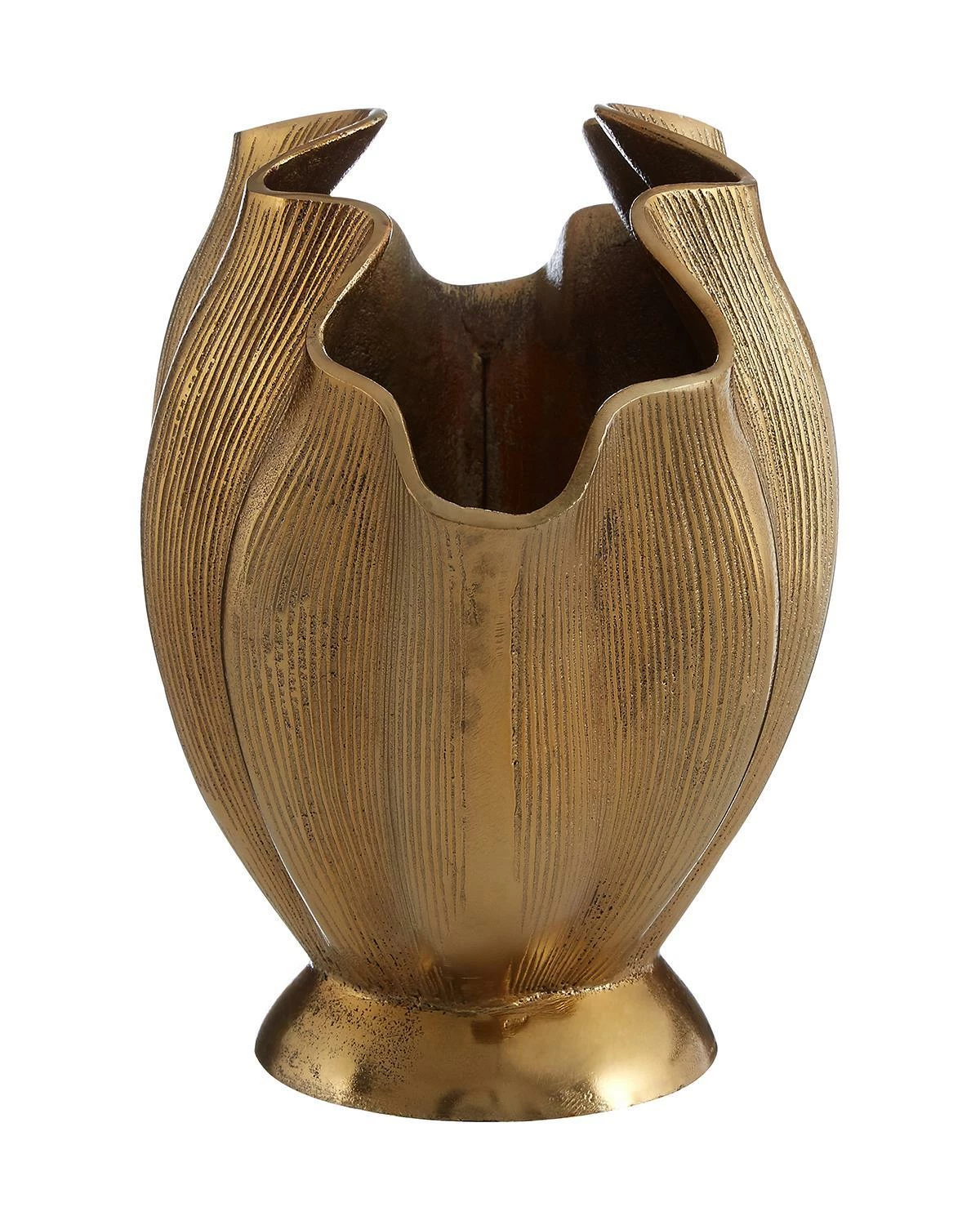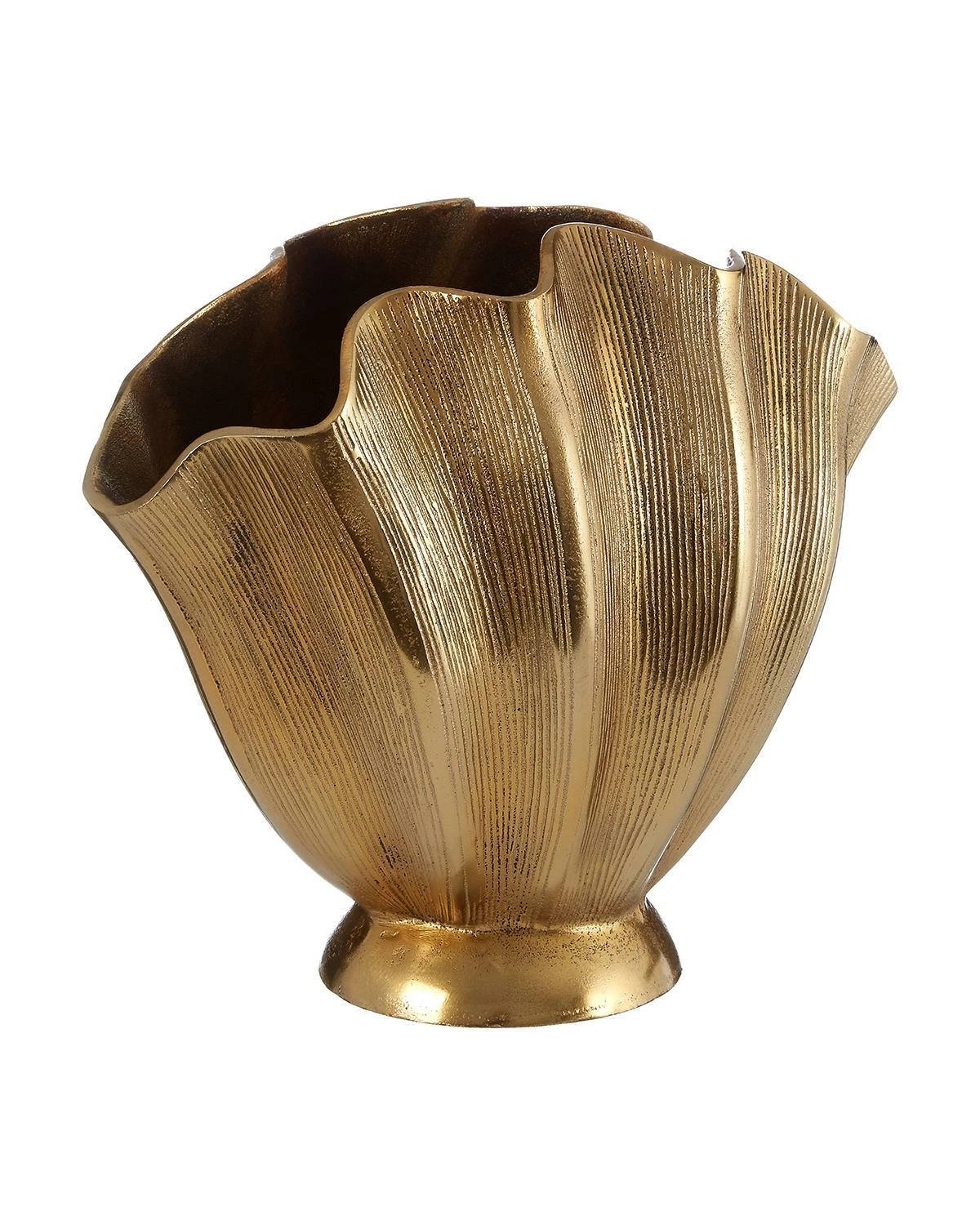 Expertly handcrafted from robust aluminium and given a vibrant gold finish effect, the Estrella vase features fluted details that create a sculptural statement. Its round standalone base adds stability to this beautiful piece.