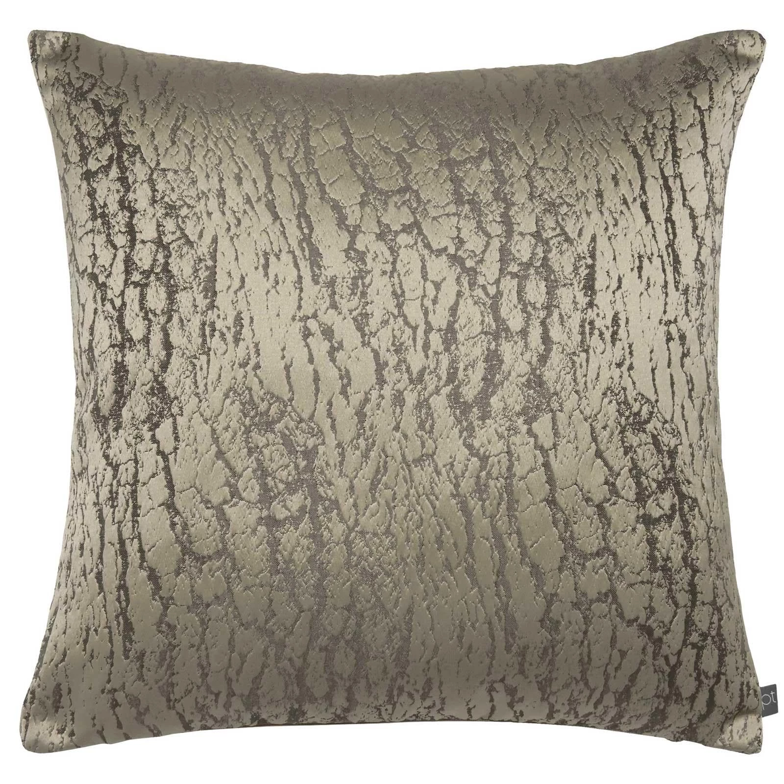 - A luminous foil print cushion cover in a luxurious bronze fabric