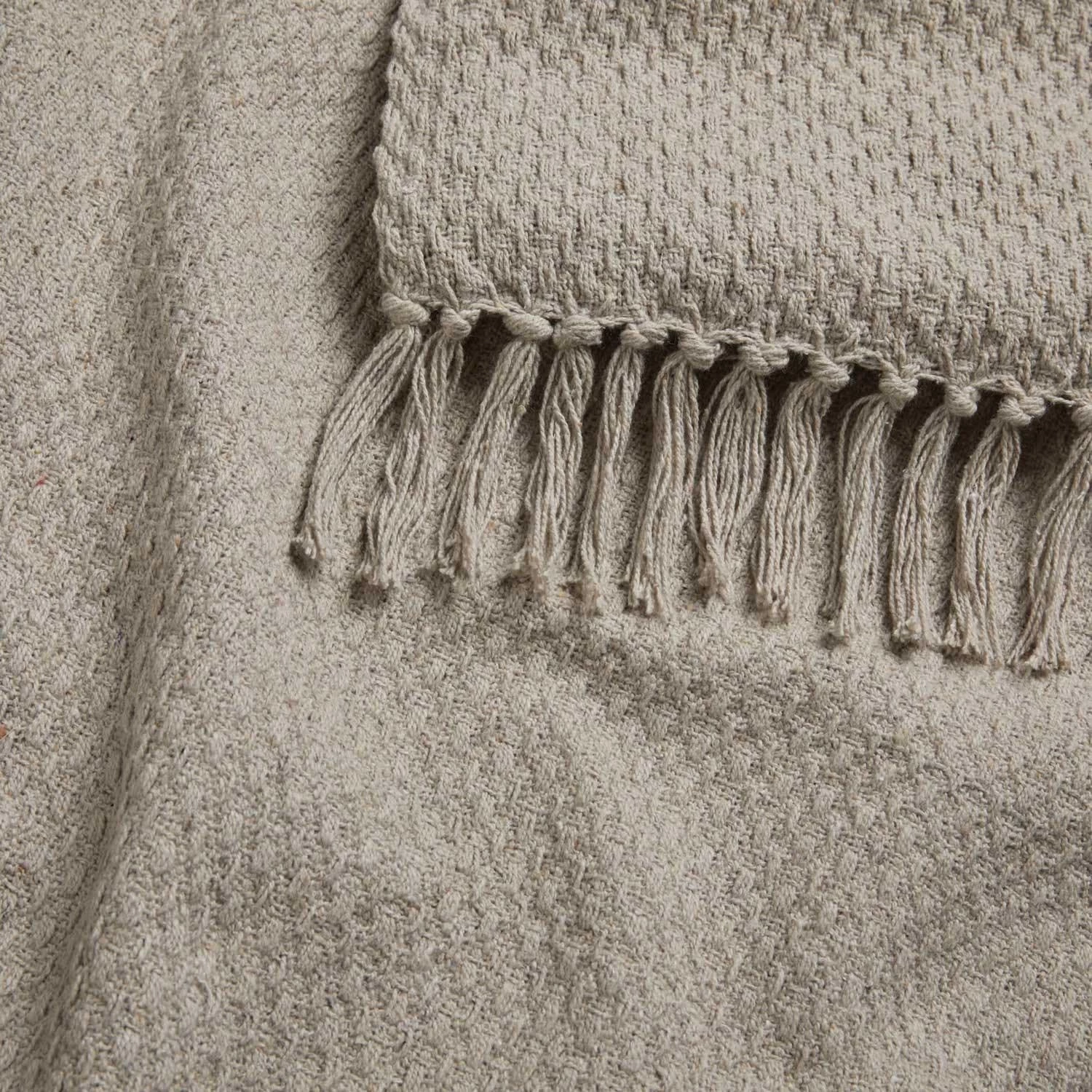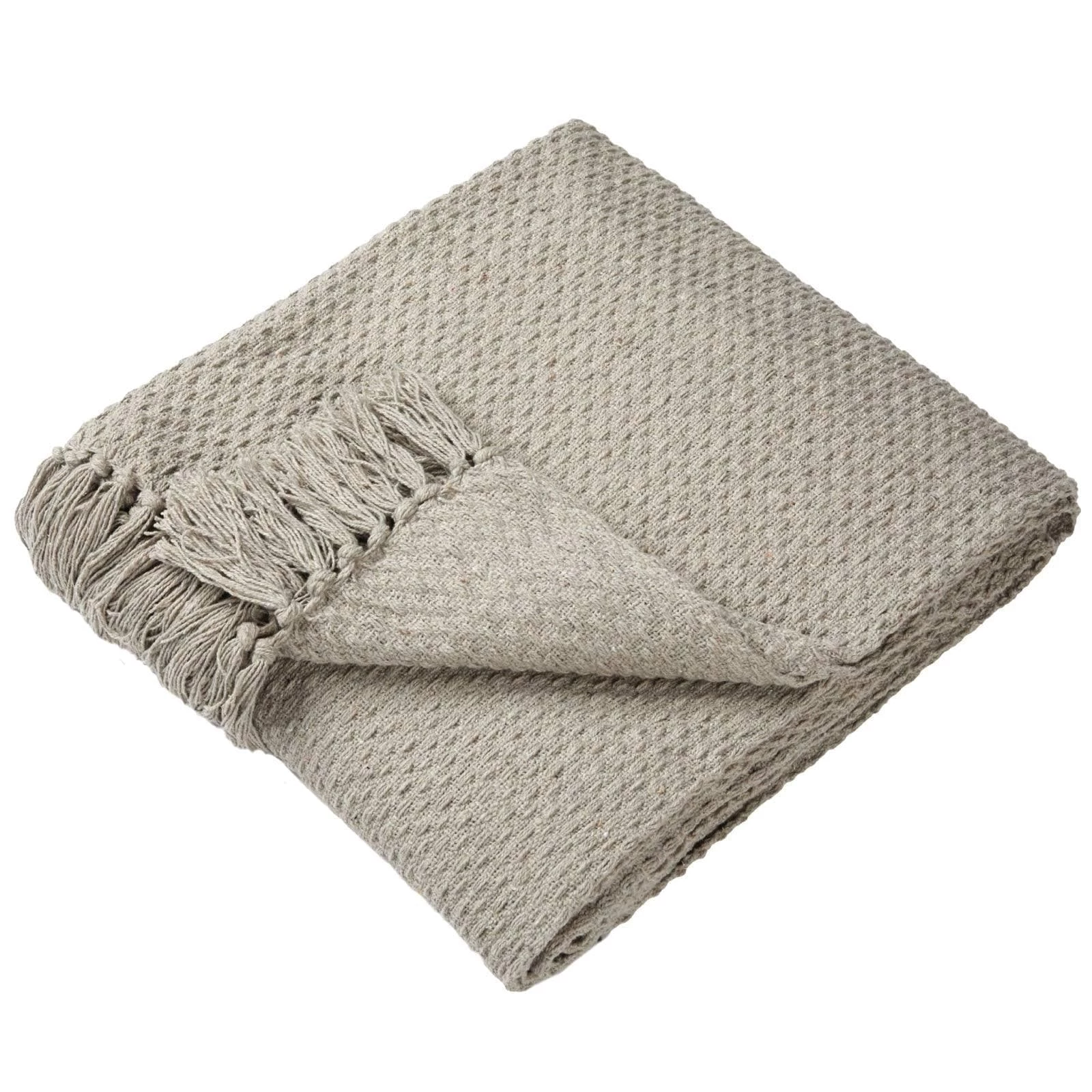 This intriguing basket weaved design throw creates compelling visual textures that make a splash in any contemporary bedroom or living area while the soft beige tones work well in a variety of settings.