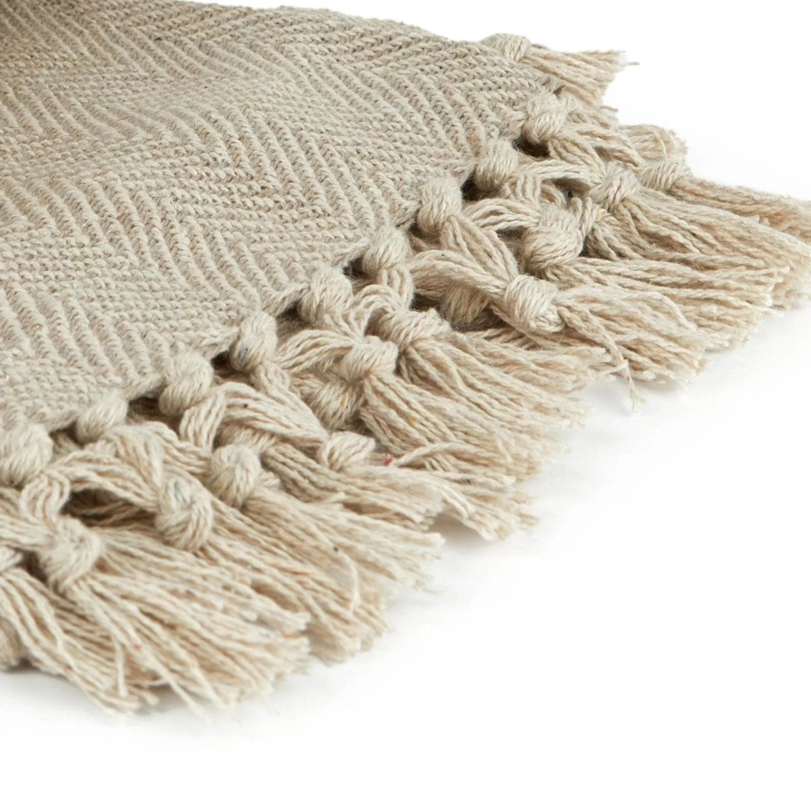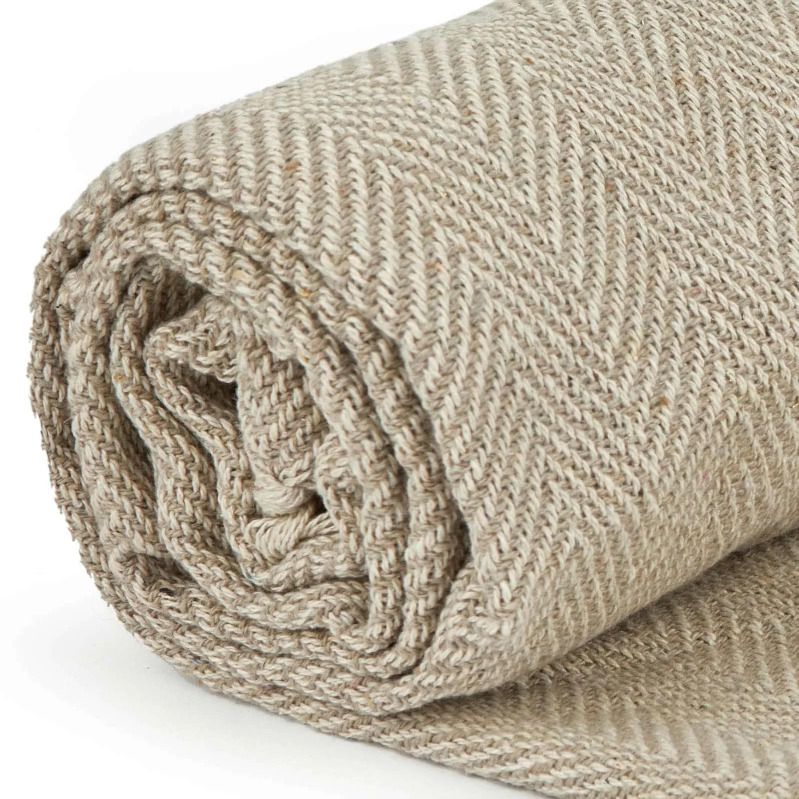 Designed with a subtle tonal beige herringbone pattern woven using 100% recycled cotton fibres, this throw will co-ordinate with any modern decor. When not being used to keep you cosy on cold nights, this throw can be draped over a chair or folded at the end of the bed. The boho feel also means these blankets look great outside for BBQs and garden parties! Recycled cotton cuts down on the harsh process of creating brand new cotton products, it is a natural fibre and is biodegradable. We hope you’ll get many happy years of use from this throw, but if the time ever comes that you need to dispose of it, it can be recycled again!