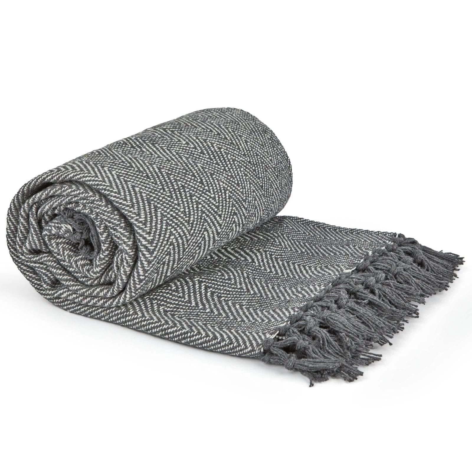 Designed with a subtle grey herringbone pattern woven using 100% recycled cotton fibres, this throw will co-ordinate with any modern decor. When not being used to keep you cosy on cold nights, this throw can be draped over a chair or folded at the end of the bed. The boho feel also means these blankets look great outside for BBQs and garden parties! Recycled cotton cuts down on the harsh process of creating brand new cotton products, it is a natural fibre and is biodegradable. We hope you’ll get many happy years of use from this throw, but if the time ever comes that you need to dispose of it, it can be recycled again!