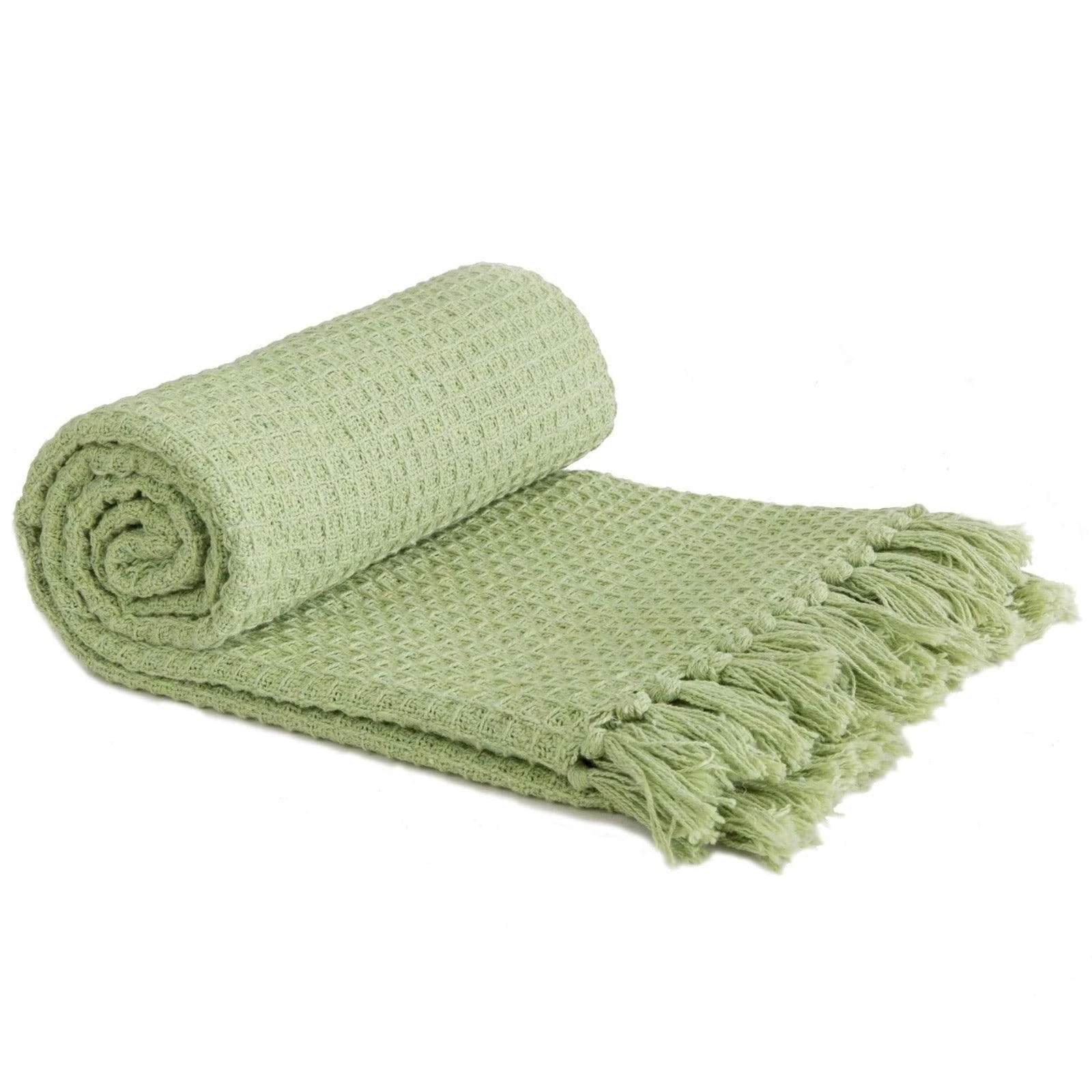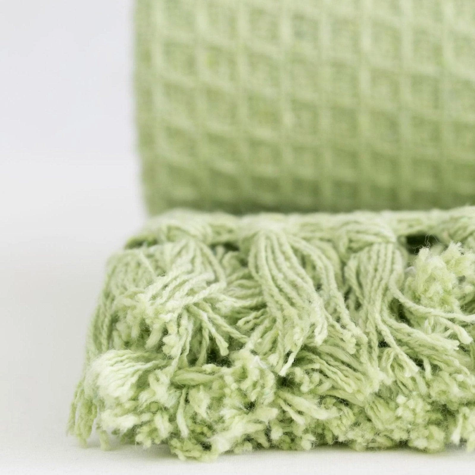 Designed with a simple 3D waffle texture and woven using 100% recycled cotton fibres, this soft green throw will co-ordinate with any modern decor. When not being used to keep you cosy on cold nights, this throw can be draped over a chair or folded at the end of the bed. The boho feel also means these blankets look great outside for BBQs and garden parties! Recycled cotton cuts down on the harsh process of creating brand new cotton products, it is a natural fibre and is biodegradable. We hope you’ll get many happy years of use from this throw, but if the time ever comes that you need to dispose of it, it can be recycled again!