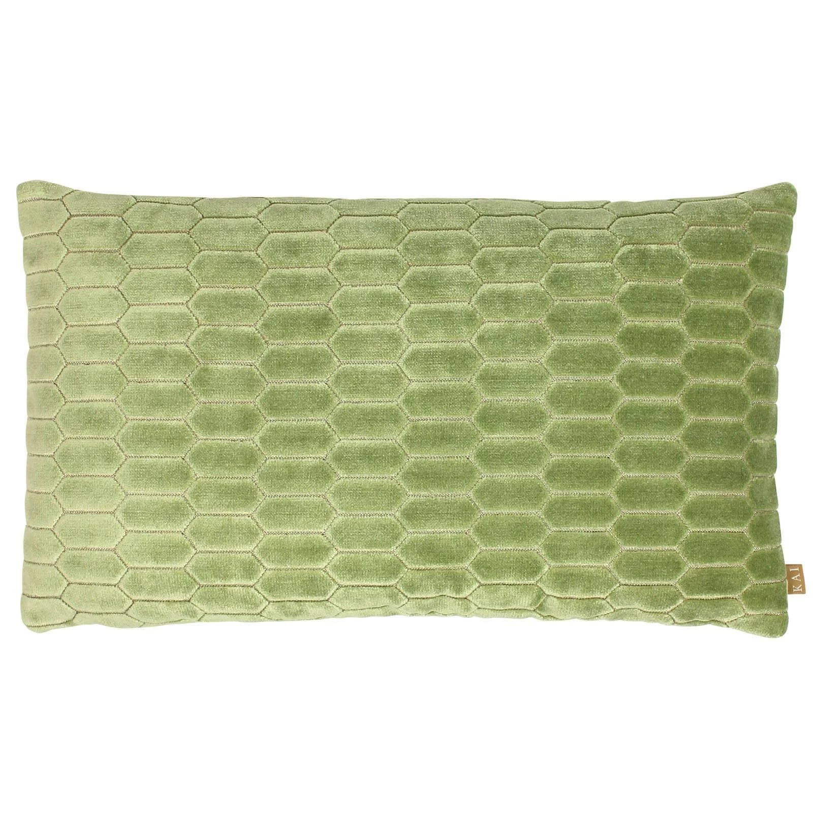 - Features a subtle geometric design on a plush velvet in a fresh green