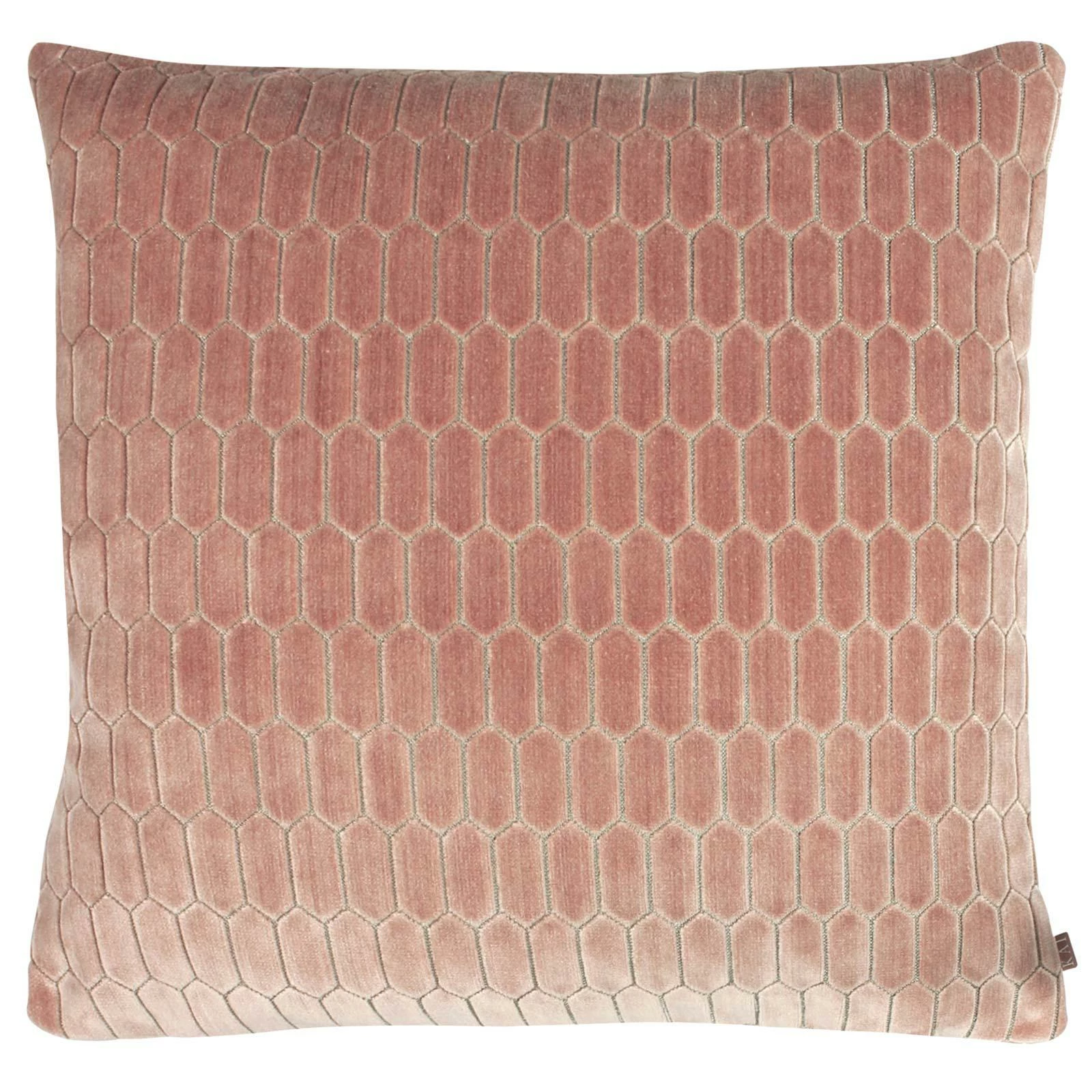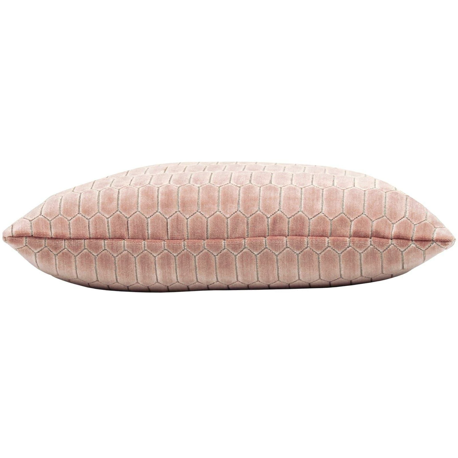 - Features a subtle geometric design on a plush velvet in a lavish pink
