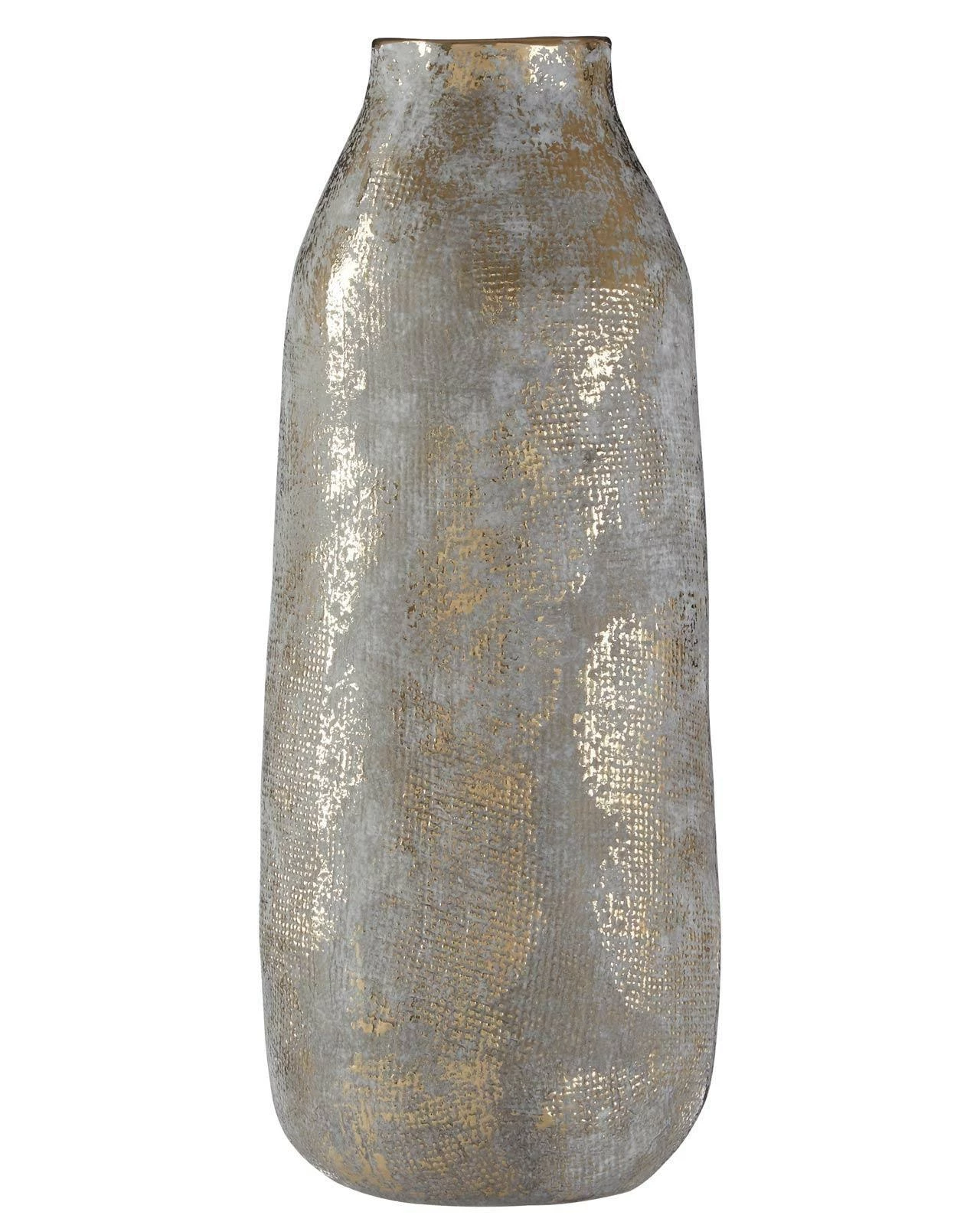 This Callie vase is a beautifully designed piece that brings an abstract touch to any room. Measuring 35cm in height, this large vase features a two tonal contrast of grey and gold finishes, giving it a unique and earthen appeal. The distressed textured detail on the surface of the vase creates a tactile feel, making it a great addition to any room with its versatility. Whether you’re looking to add a touch of sophistication to your home or office, the Callie range is sure to make a statement.