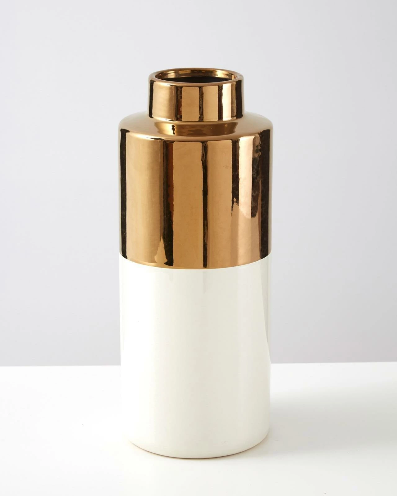 - White and metallic gold vase