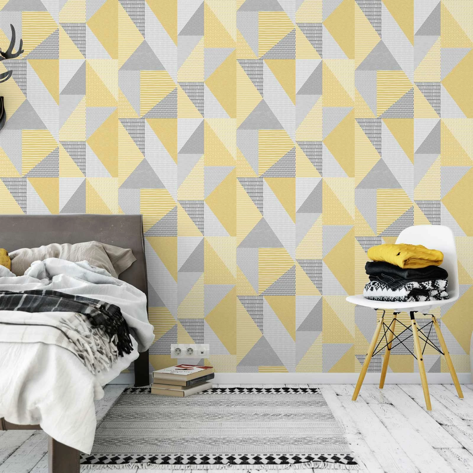 Make a statement with this unique retro design featuring painterly stripes and patterns inspired by the mark-making trend within art and interiors. Go for a lovely ochre and grey palette