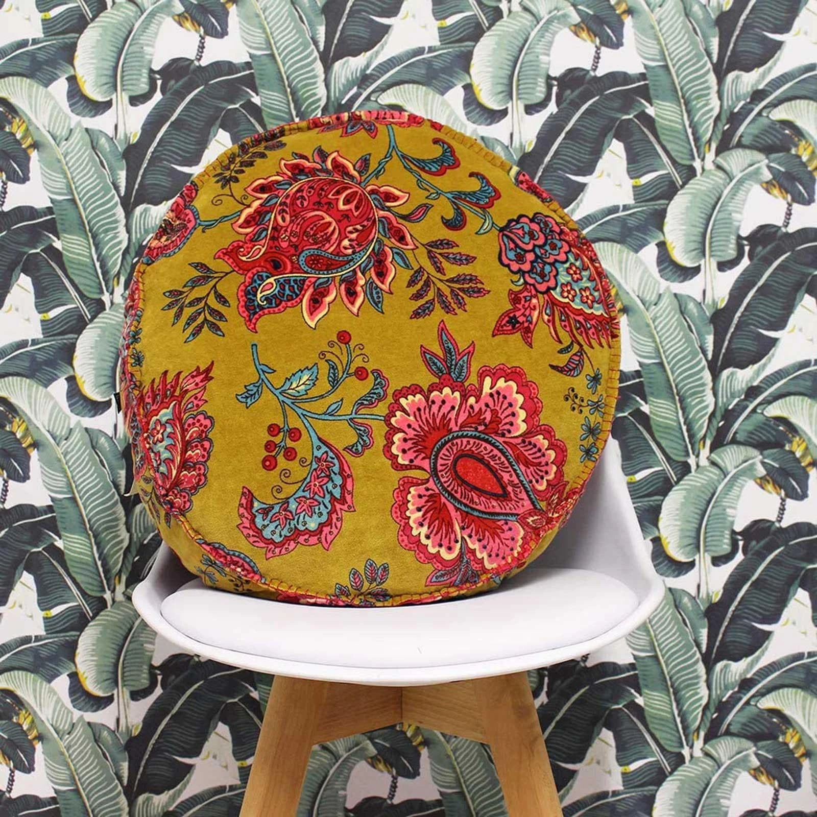 Made for the boho hippies found in all of us the Paoletti Malisa range brings together rich colours and sumptuous textures. The Malisa round cushion features a bright and detailed paisley Indian-inspired print of plants and flowers on a plain base that will bring a spark of botanical flair to any home interior. Featuring a faux velvet front and reverse these cushions are amazingly soft and will work fantastically on your sofa or bed. Each edge has been blanket stitch to add to this cushion’s quirkiness and a hidden zip closure runs down the centre of its reverse. This cushion cover has been lovingly made from 100% high-quality cotton giving it that notable cotton softness. For the best results dry clean this cushion only. Use a warm iron and tumble dry on a low setting to keep it looking fresh and smart.