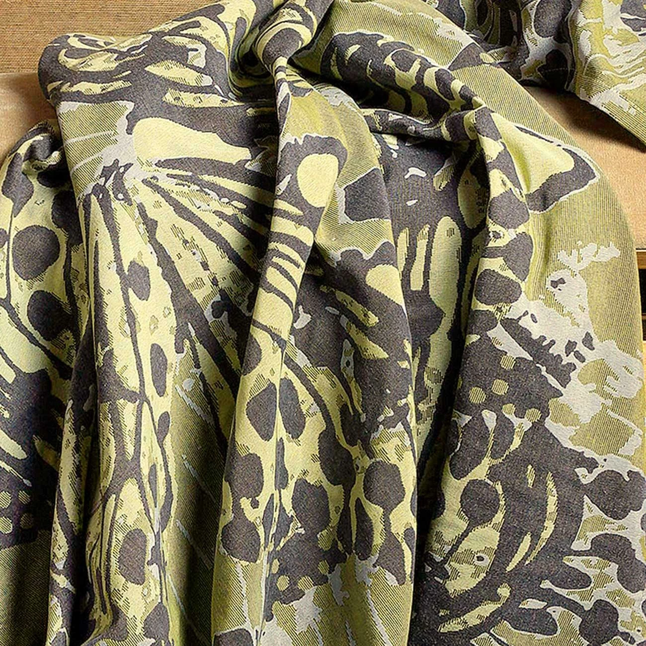 These premium quality jacquard throws are made with 100% pure cotton yarns. The large scale design reminiscent of butterfly wings in shades of green and grey is framed with a hem on all four sides. Available in two sizes, this fabulous piece will add a splash of colour and style to any bed or chair.