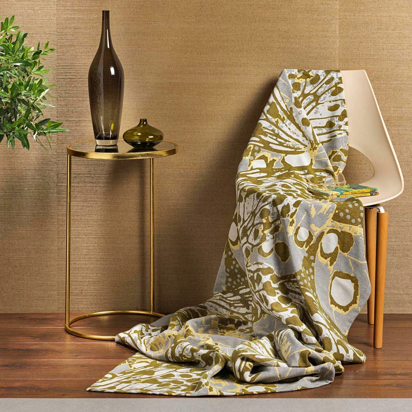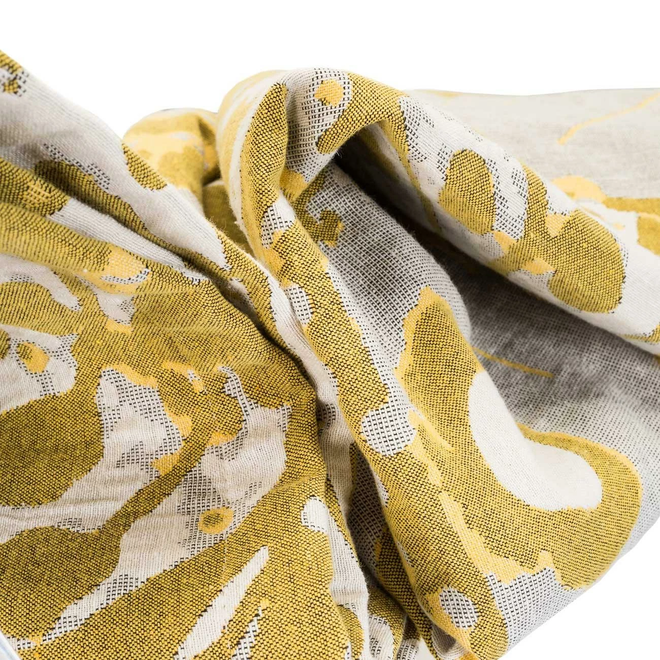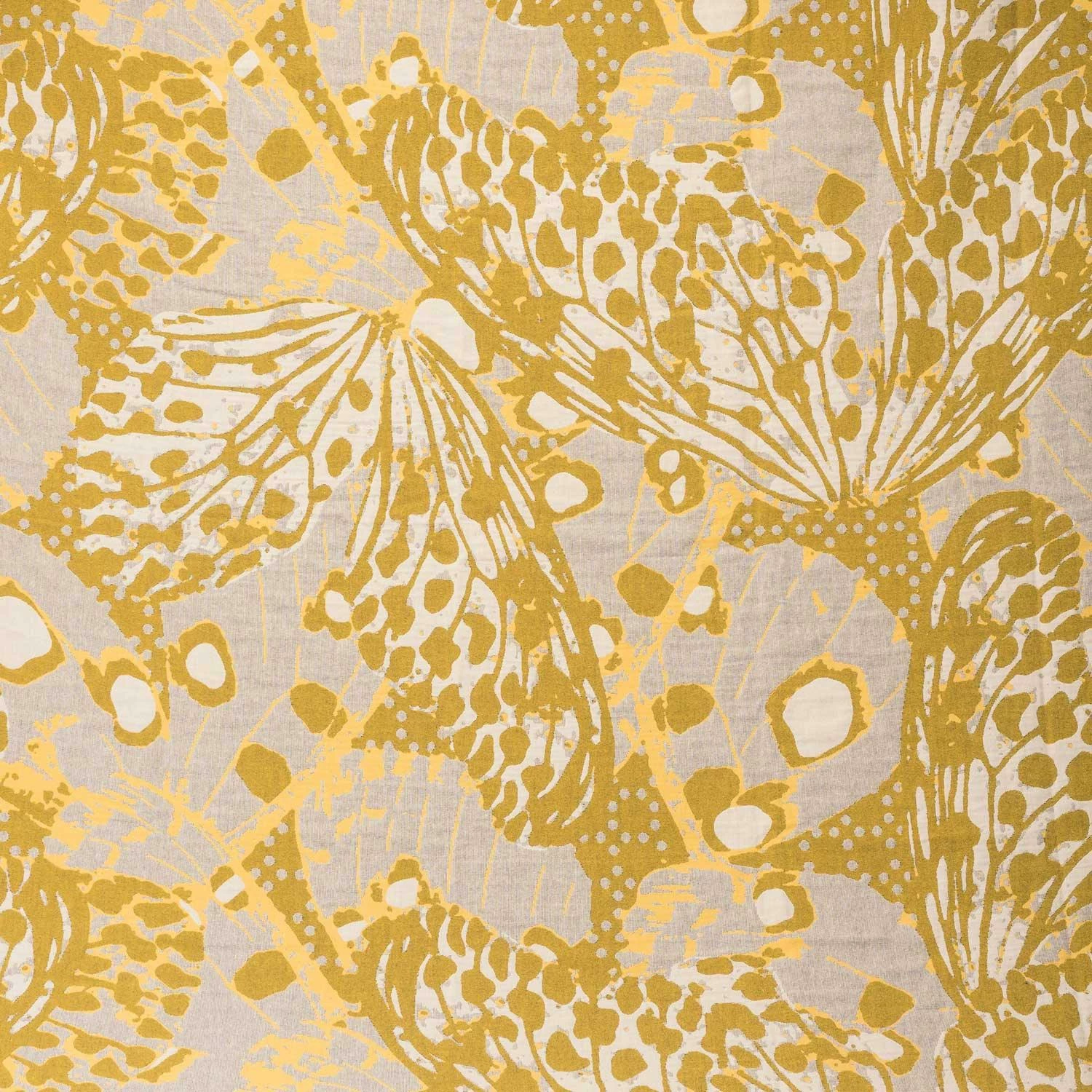 These premium quality jacquard throws are made with 100% pure cotton yarns. The large scale design reminiscent of butterfly wings in shades of ochre and grey is framed with a hem on all four sides. Available in two sizes, this fabulous piece will add a splash of colour and style to any bed or chair.