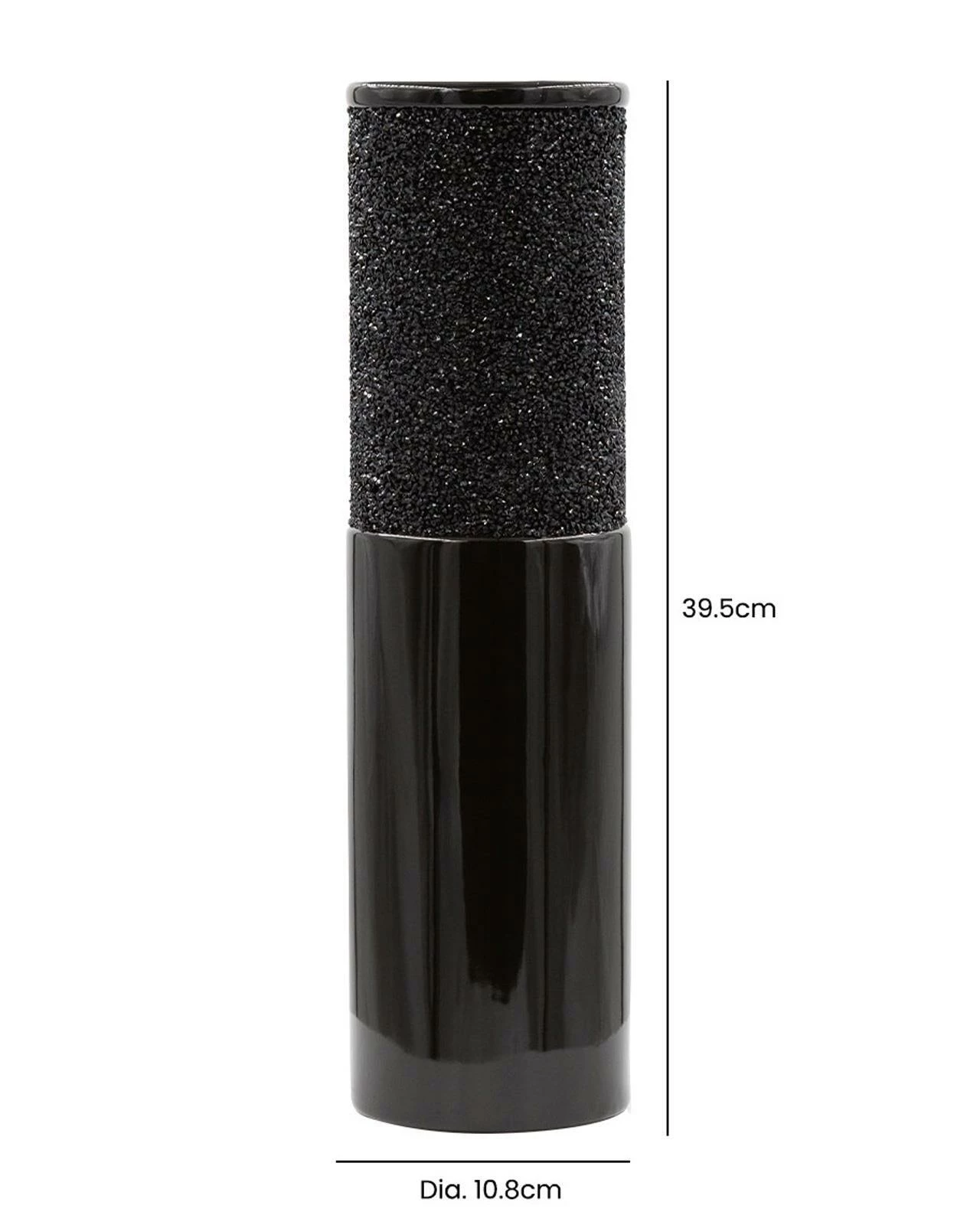This Obsidian vase with a modern cylinder design is a beautiful piece that will elevate the look of any room in your home. Measuring 39cm tall, this vase features a sleek and stylish cylindrical shape and stunning black glaze that shimmers and shines, adding a touch of glamour to your decor. Whether displayed on a mantel, side table or bookshelf, this vase with its modern design is sure to make a bold and sophisticated statement.