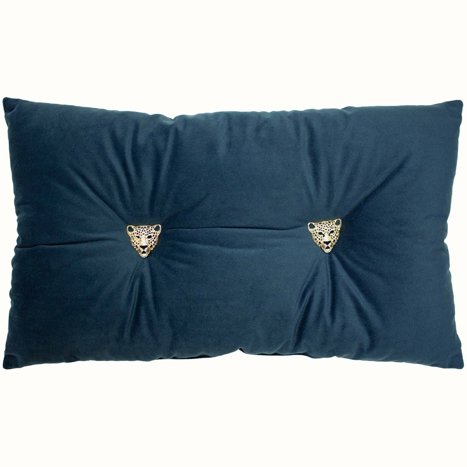 Add instant personality to your space with the luxurious Panther cushion, featuring two bejewelled wild cat buttons on a plush velvet. Made of 100% hard-wearing polyester velvet and pre-filled with hollow fibre polyester to give a soft and comfy feel.