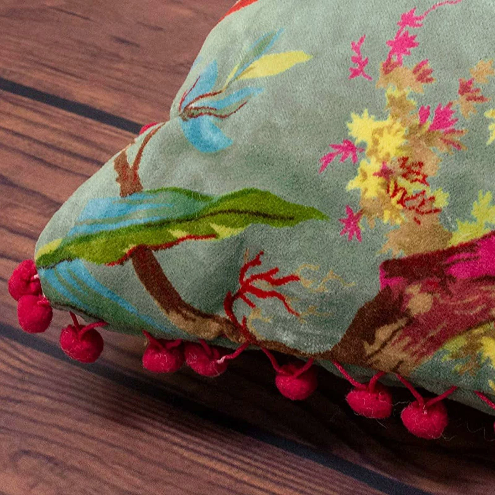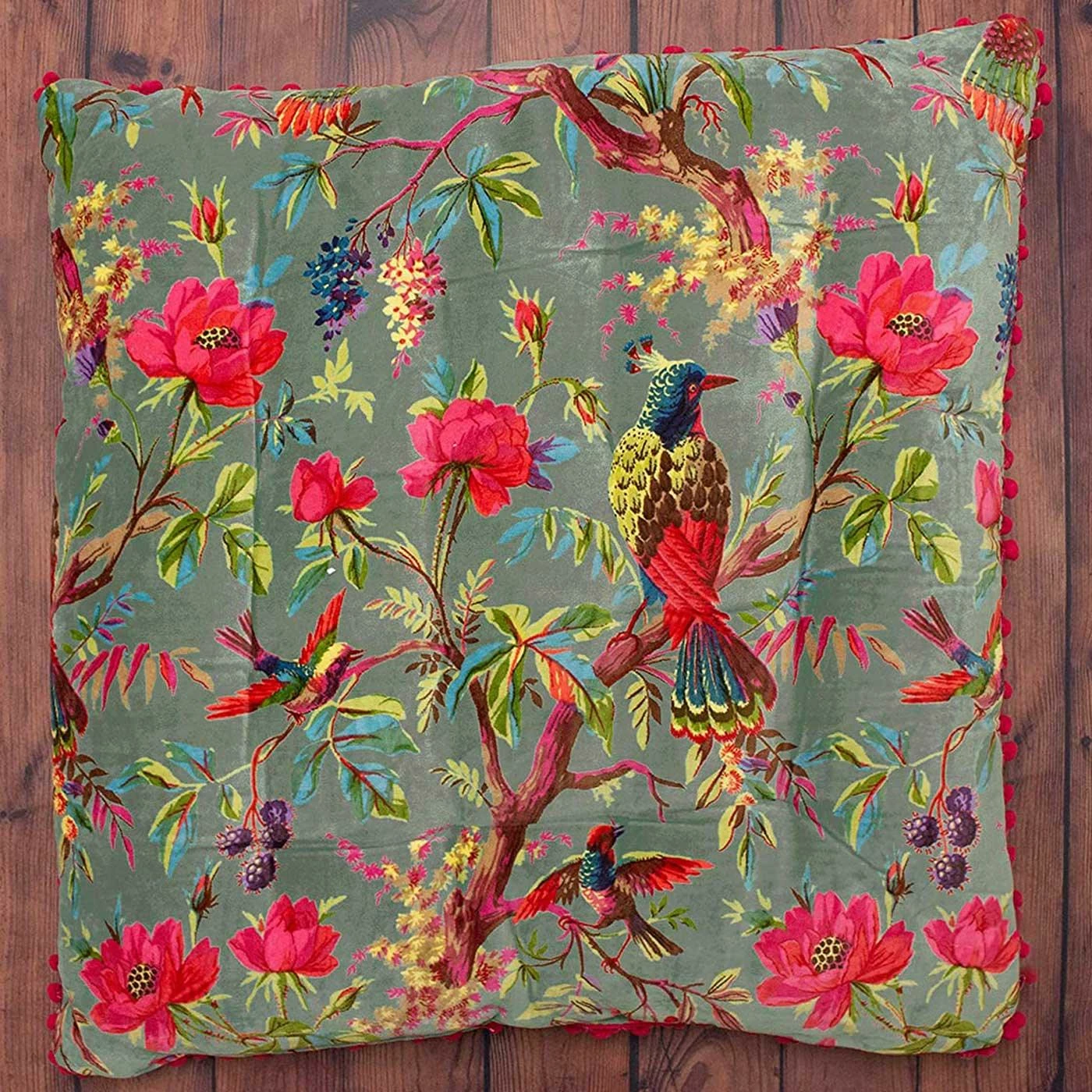 The Paradise floor cushion will bring a unique twist to any room with its Indian inspired nature print. Created in the chinoiserie style with an intricate display of birds and flowers this cushion will bring a whole new dimension to any room. The velvet feel fabric gives this gorgeous cushion a wonderful sheen. Available in a range of distinct colourways there’s a cushion for everyone, whether you’re likely to go the bold route of bright yellow or prefer to play it safe with uniform black. Made of 100% cotton fabric, this cushion is super soft and cosy making it perfect for sitting on to meditate, read or work. This floor cushion is filled with 100% hollowfibre polyester to make it as plush as possible. This floor cushion must be treated carefully and is therefore dry clean only. However, it is both tumble dryable and iron appropriate.