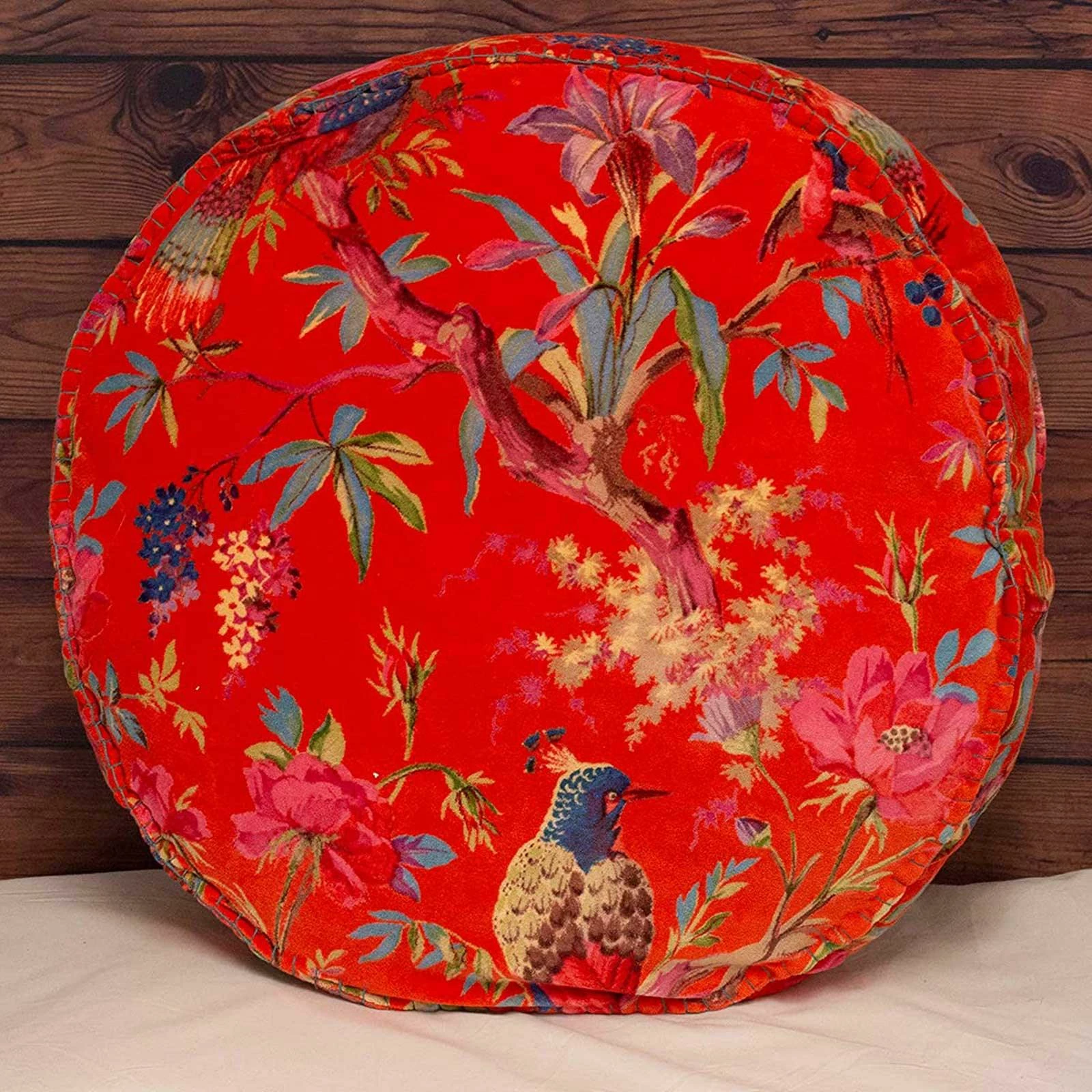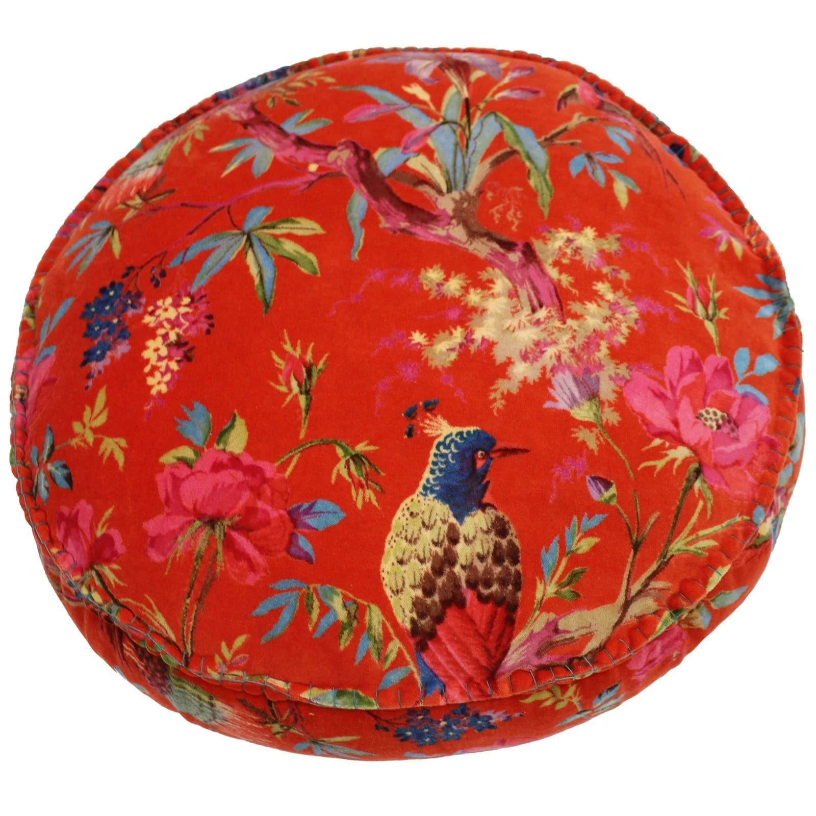 The Paradise round cushion will bring a unique twist to any room with its Indian inspired nature print. Created in the chinoiserie style with an intricate display of birds and flowers this cushion will bring a whole new dimension to any room. The velvet feel fabric is perfect for sofas and beds giving these gorgeous cushions a wonderful sheen. Complete with blanket stitched edges and a hidden zip closure. Available in a range of distinct colourways, there’s a cushion for everyone whether you’re likely to go the bold route of bright yellow or prefer to play it safe with uniform black. Made of 100% cotton fabric this cushion is super soft and cosy. This cushion must be treated carefully and is therefore dry clean only. However, it is both tumble dryable and iron appropriate.