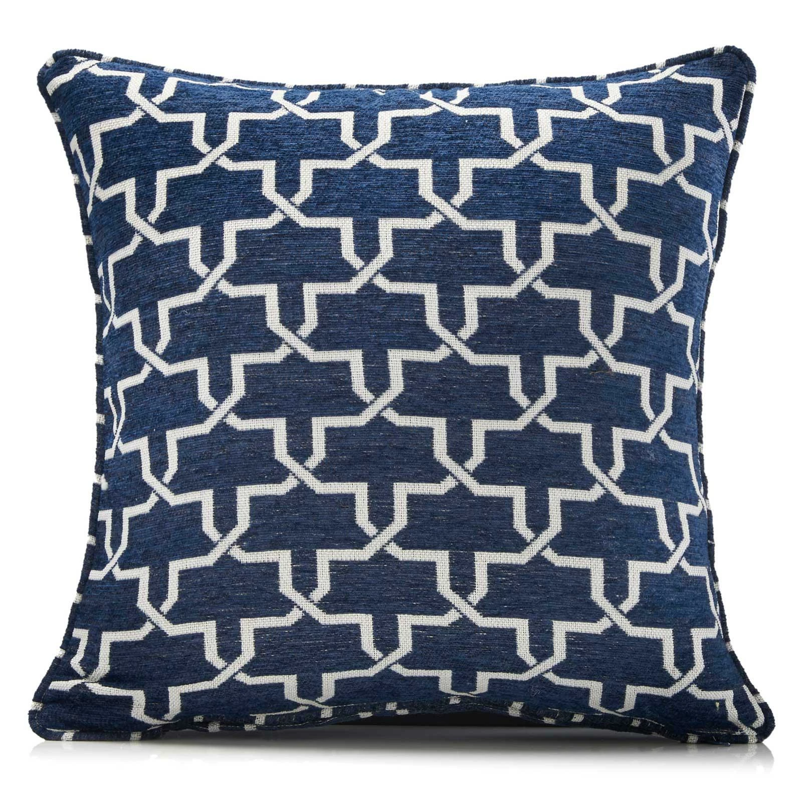 Add a retro feel to your room with this Petra cushion cover featuring an all-over geometric design woven into a navy blue chenille material. With co-ordinating colours and designs available, it is sure to add the wow factor to any room.