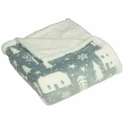 Furn Winter Walk Mist Blue Sherpa Fleece Throw 130cm X 150cm