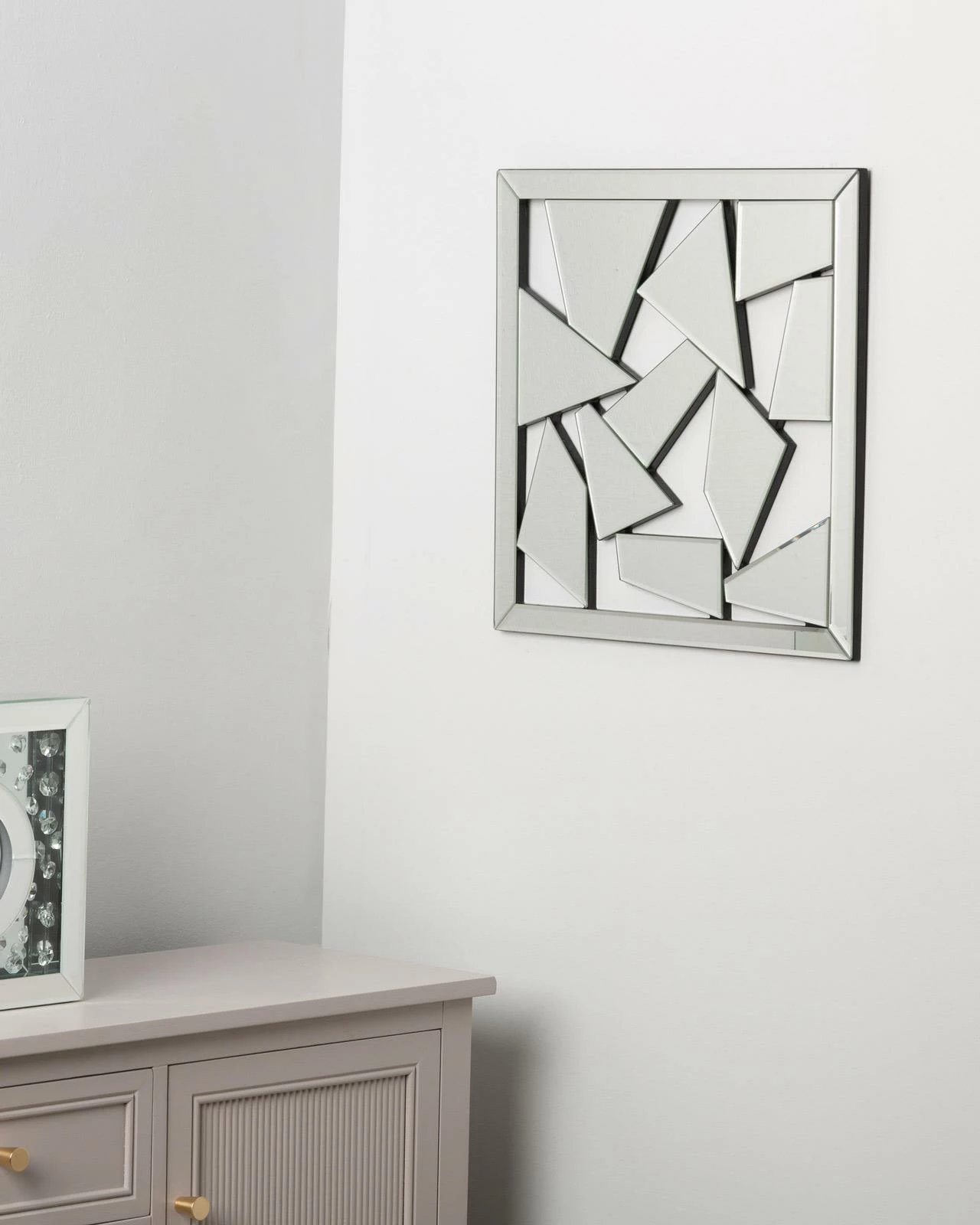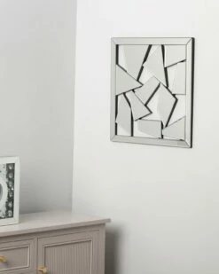 Introducing the Shatter mirror wall art, a stunning and unique piece of decor that will add a touch of elegance and style to any modern home. Measuring 40cm square, this piece is large enough to make a statement while still fitting comfortably on any wall. Crafted with high quality materials, this mirrored wall art features an abstract pattern design that looks like broken pieces yet joined together to create a stunning visual display. The shattered mirror effect adds depth and dimension to the artwork, making it a truly unique and eye-catching addition to any room. Whether you’re looking to add a touch of sophistication to your living room or create a stunning focal point in your bedroom this contemporary and modern piece is a versatile addition to any decor, while its striking visual appeal will leave a lasting impression on all who see it.