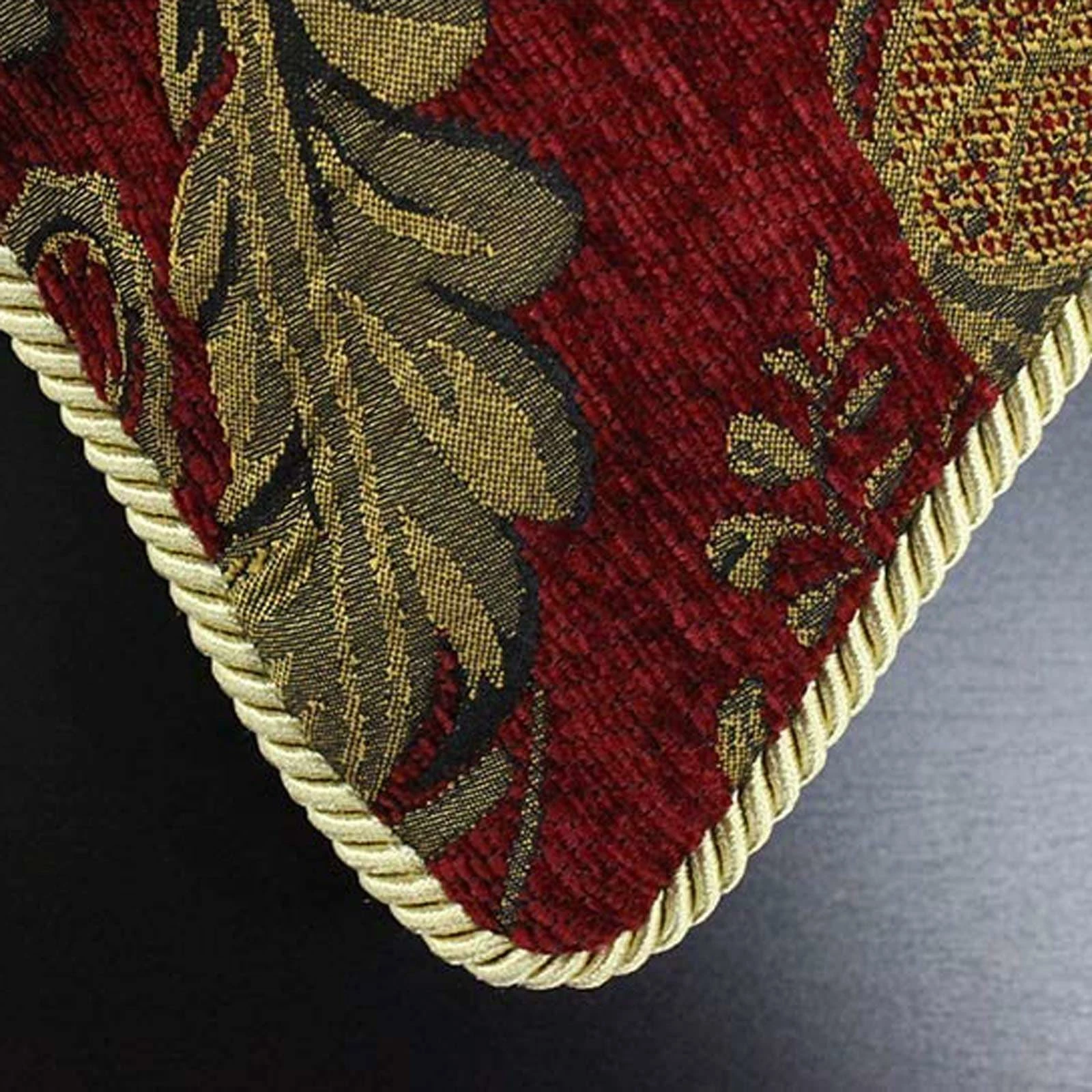 - Embroidered, floral damask jacquard design in rich burgundy red with gold detailing