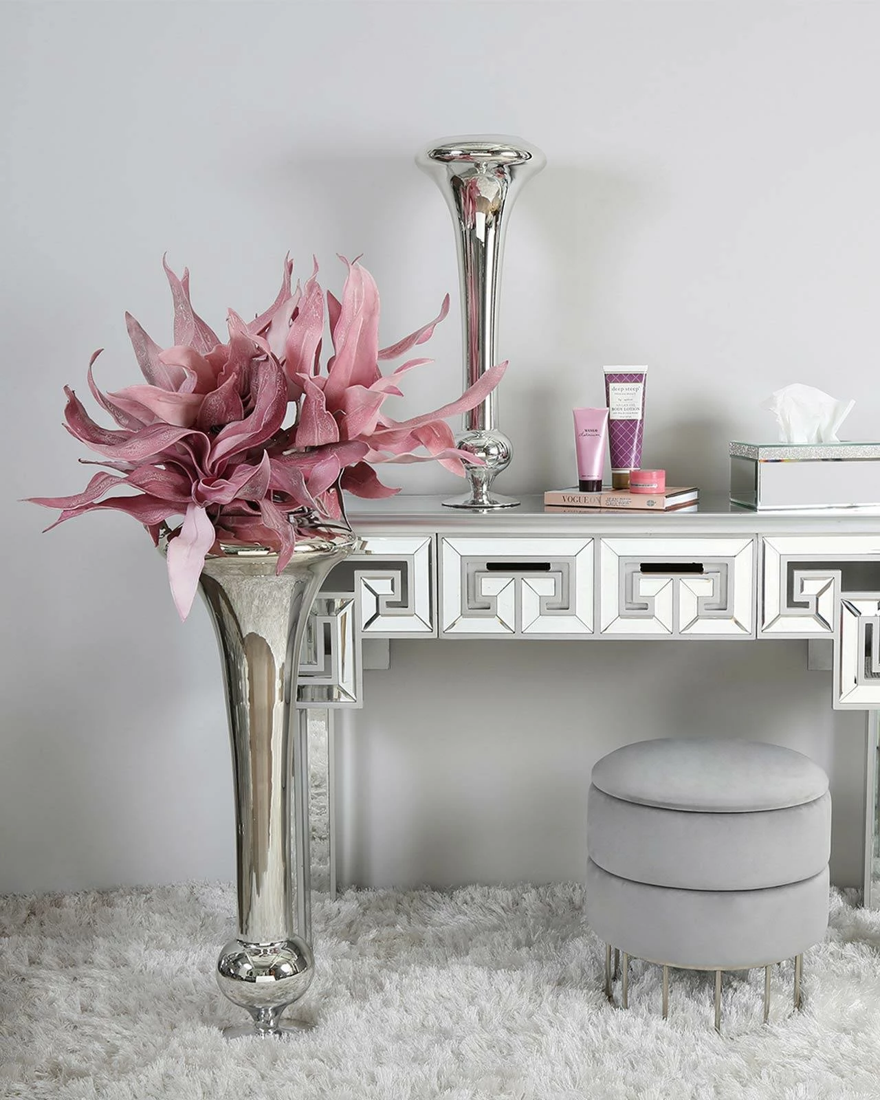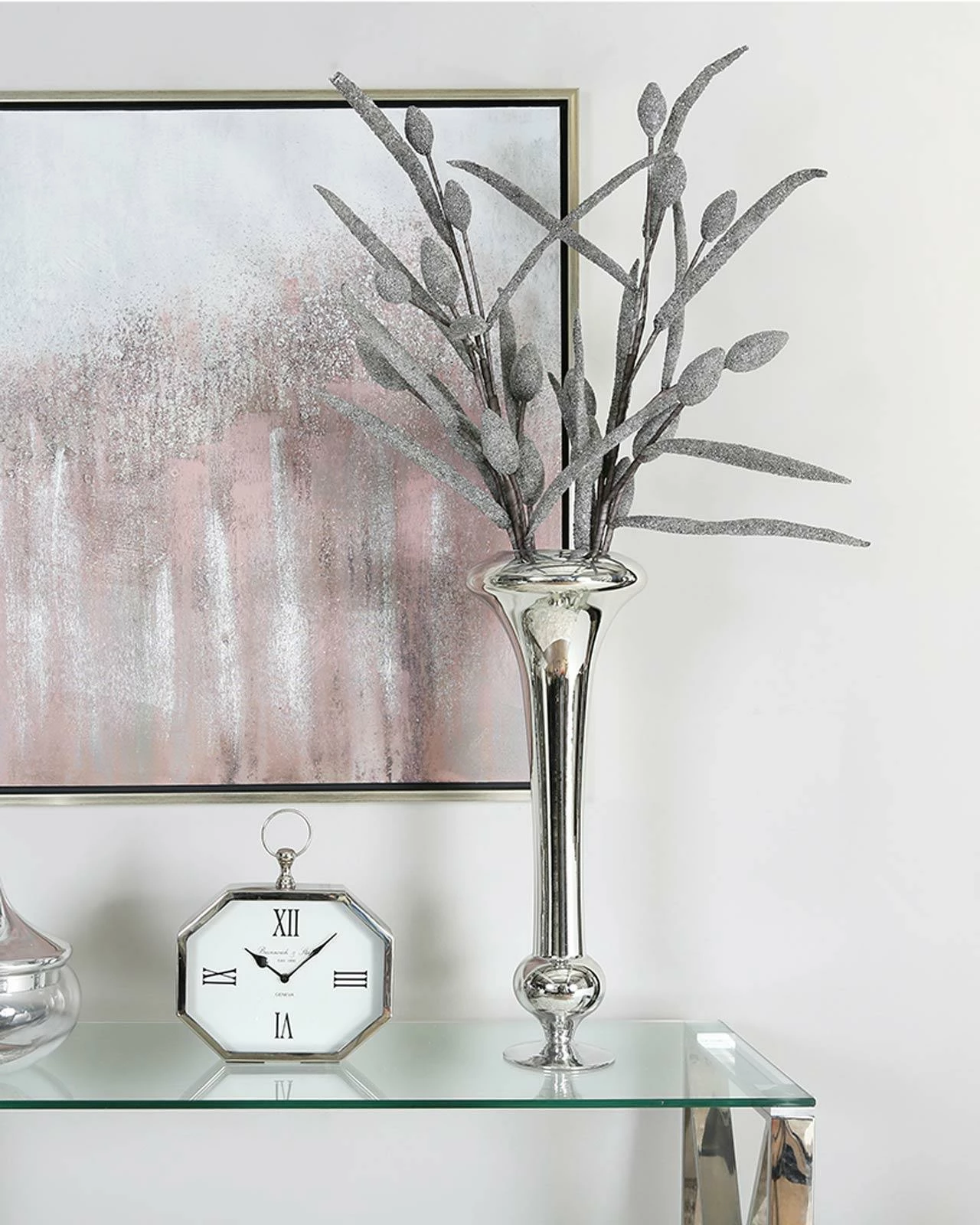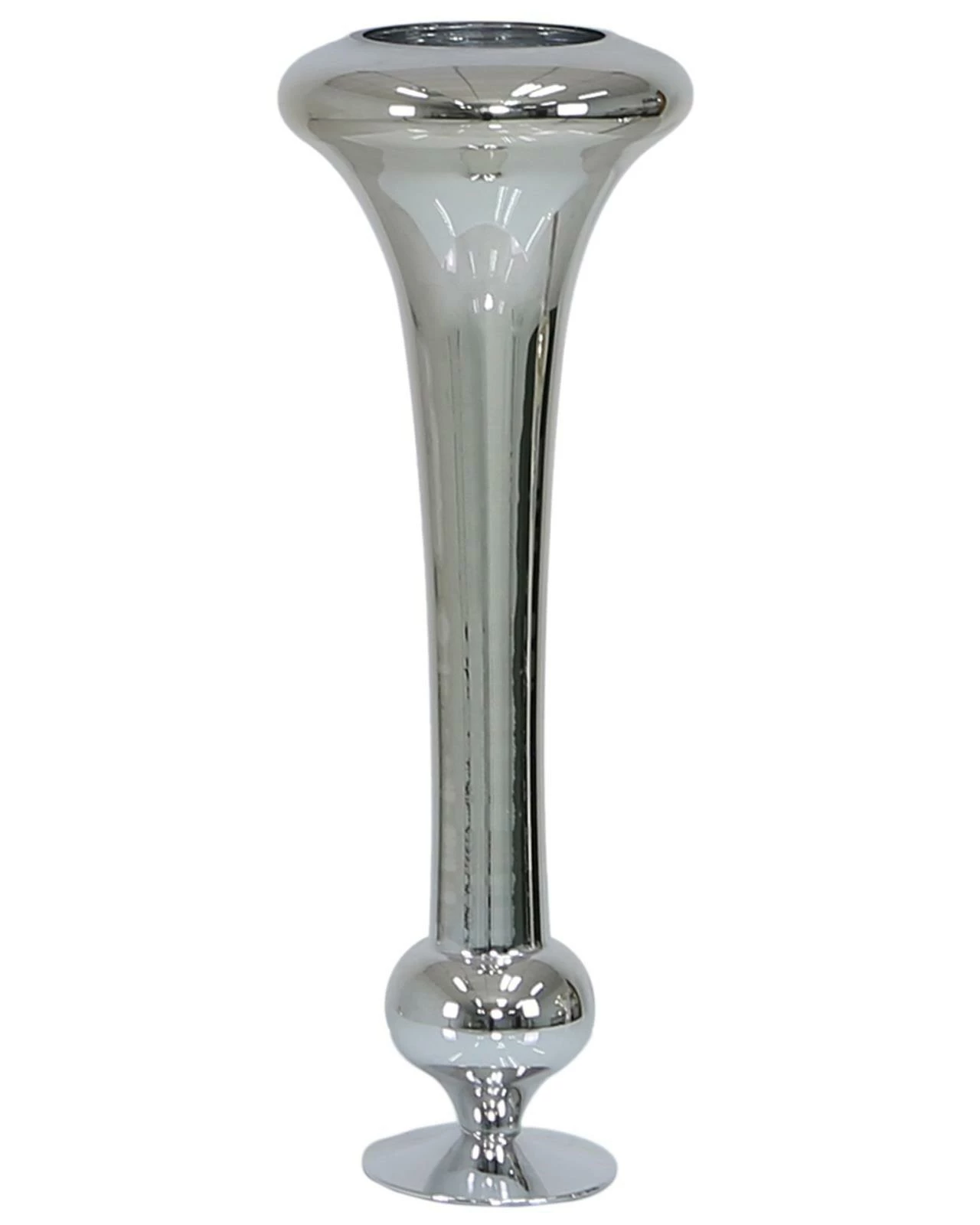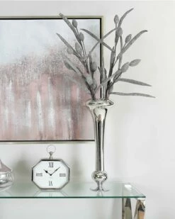 This fluted vase is a stunning and elegant piece that is sure to enhance any home decor. Measuring 61cm tall, it features a beautiful fluted design and a sleek silver finish that will complement any other silver decor in your home. Whether displayed on its own or filled with pampas grass or floral blooms, it will surely make a statement. Its unique and contemporary design makes it a perfect choice for adding a touch of glamour and sophistication to any interior decor. Perfect positioned on its own as a standalone decorative piece or you can add fresh or faux flowers to it for an extra touch of beauty.