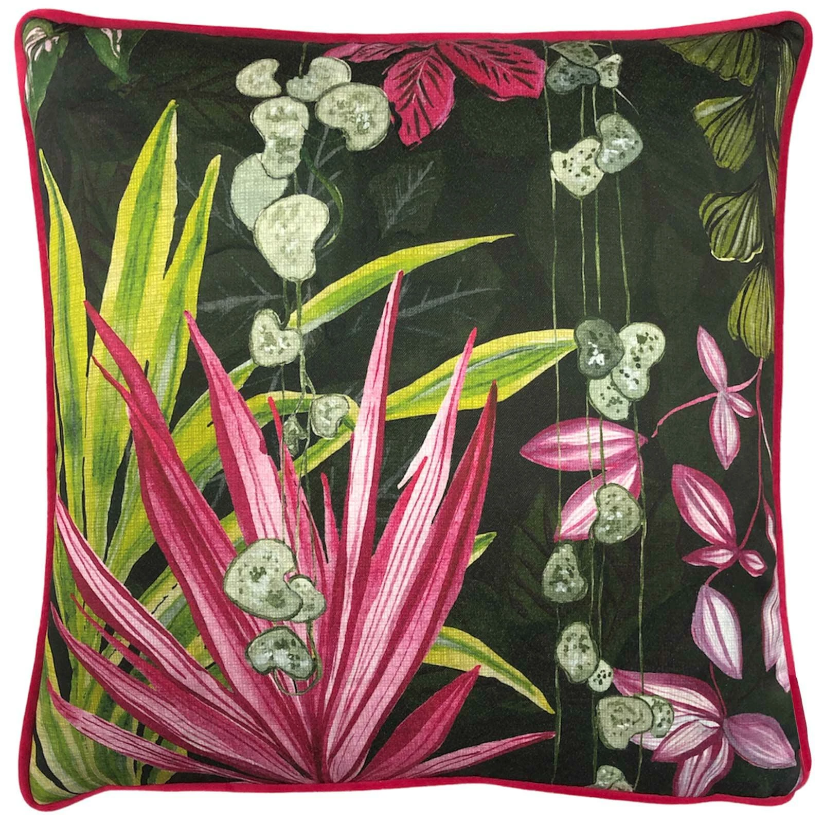 Bring the outdoors into your home with this bright cushion. Surround yourself with lush, layered climbing plants – a perfect feature for any room.